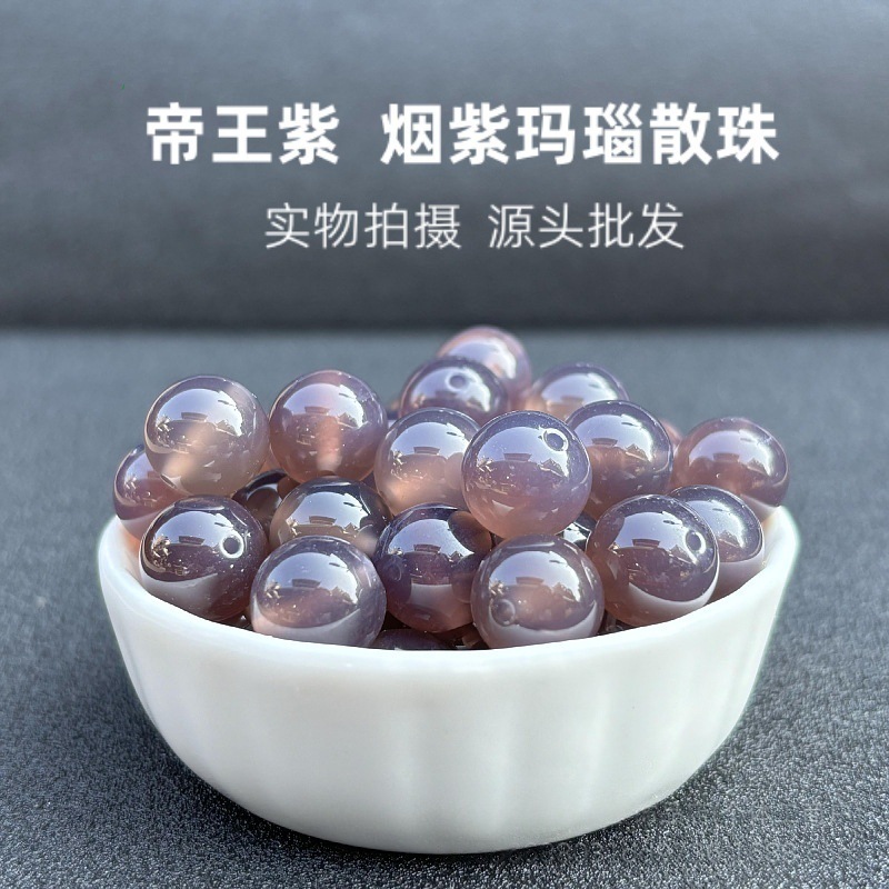 帝王紫玛瑙珠子烟紫圆珠散珠串珠diy手机链手链项链饰品配件批发