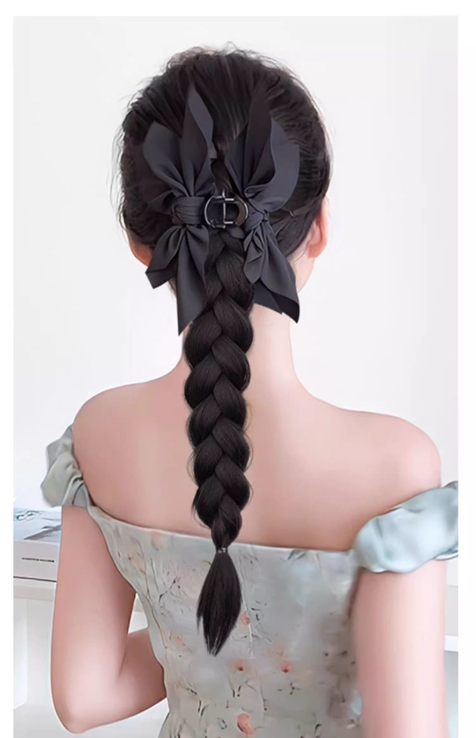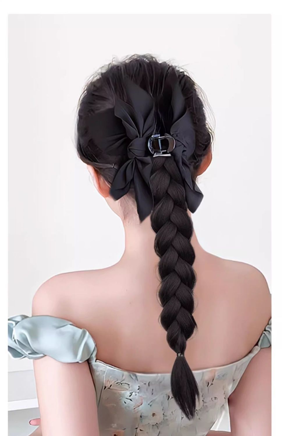 カラー 黒い蝶結びのお下げ【ブラウンブラック】,黒い蝶結びのおさげ