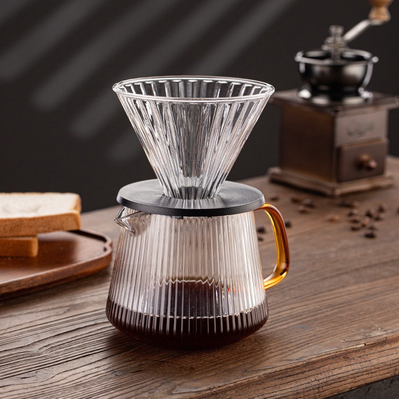 厚みのある耐熱ストライプ型家庭用手動コーヒーフィルターセット高ホウケイ酸ガラス製円錐形ドリップ式コーヒーポット
