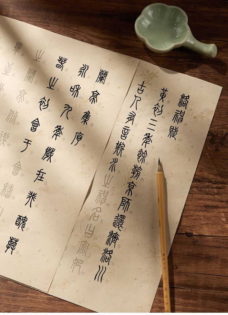 小篆書千字の翻訳文は手本にして毛筆の書道の専用紙の初心者の篆書の入門の帖をまねて毛筆の字を練習します。