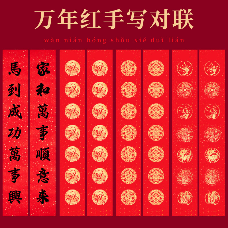 2026年馬年対聯用紙、万年紅白紙、手書き用宣紙、斗方春聯用紙、金箔入り七言対聯、卸売