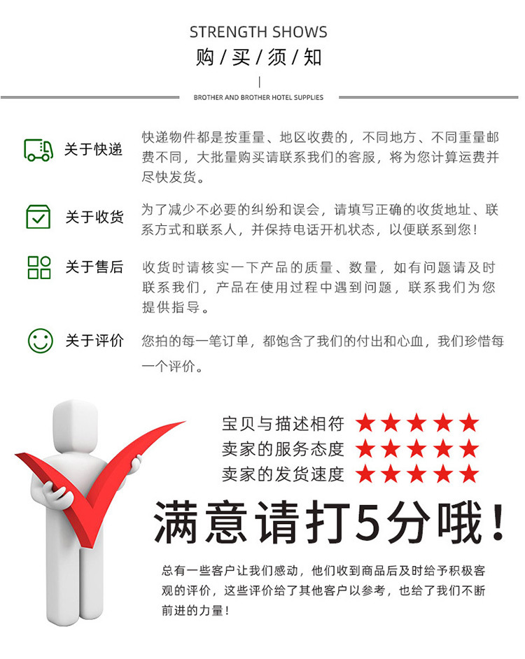 5、信誉保障,货期准时,有不合格的产品,包退换。