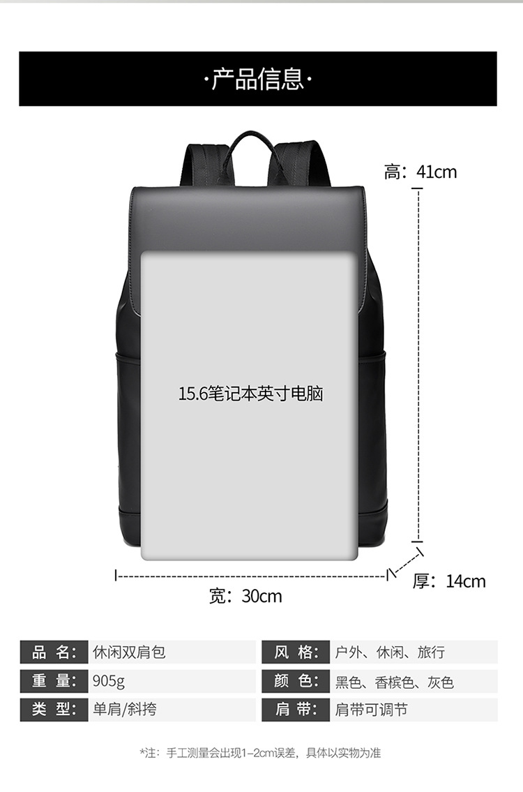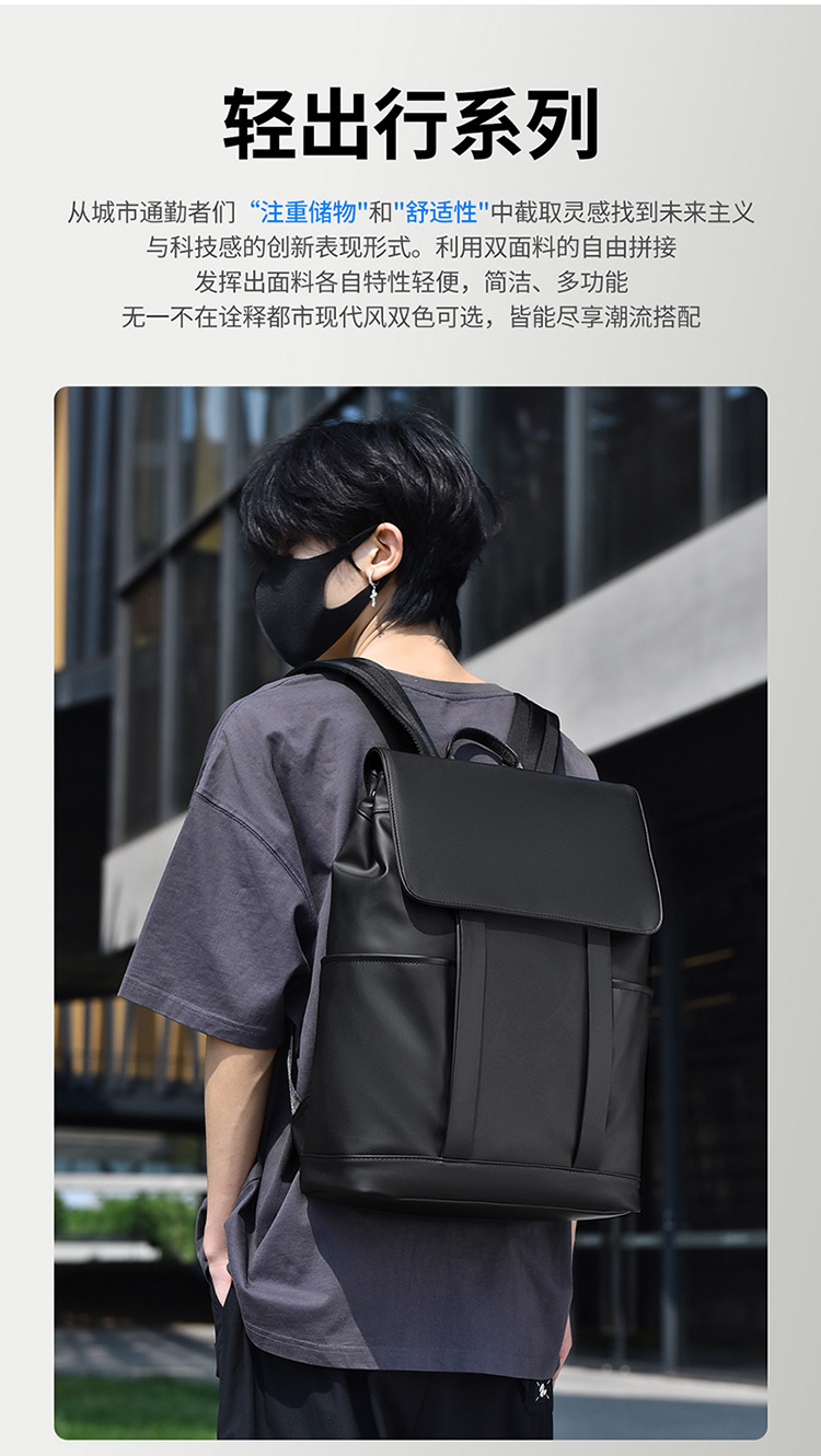 クロスボーダービジネス通勤リュックサック男性カジュアル純色シンプル旅行パソコンバッグ大容量学生カバン