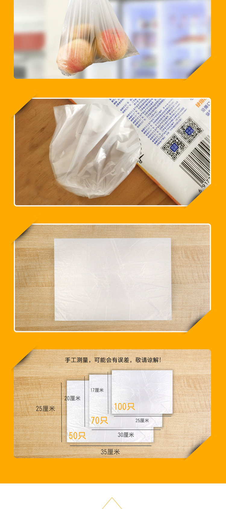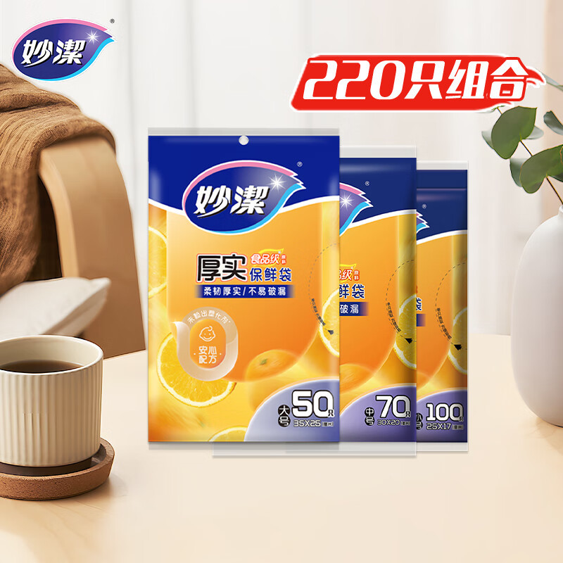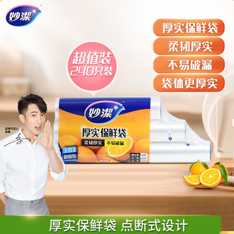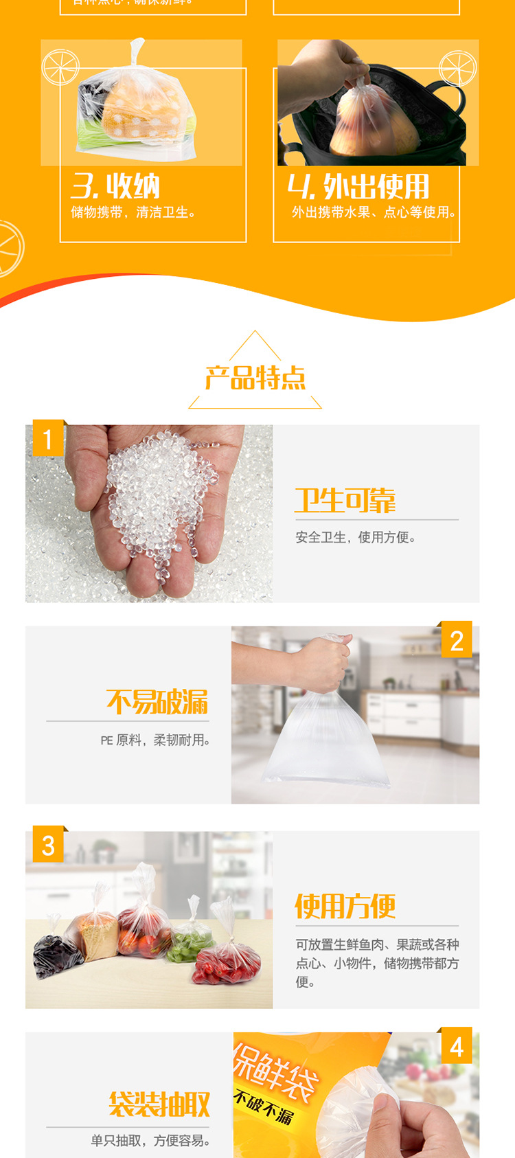 妙潔鮮度保持袋、引き出し式家庭用キッチン使い捨てPE食品袋、大中小組み合わせパック、食品鮮度保持