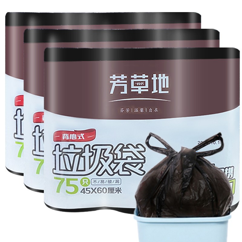 芳草原ベスト式手提げゴミ袋厚手黒色家庭用ゴミ袋キッチンオフィス用使い捨てゴミ袋