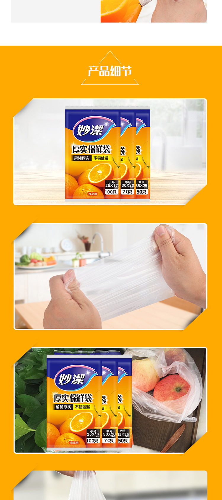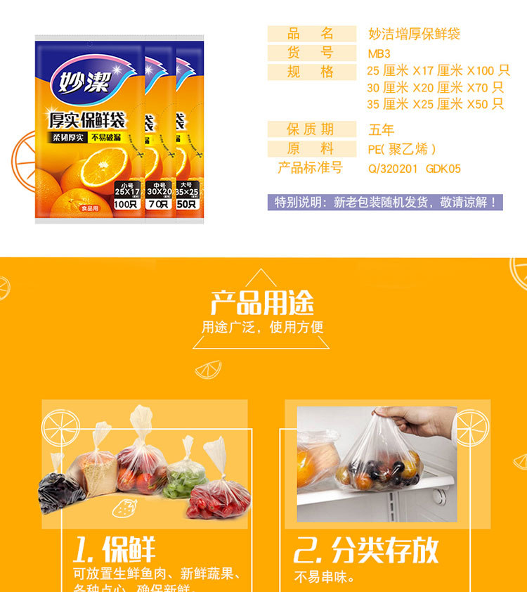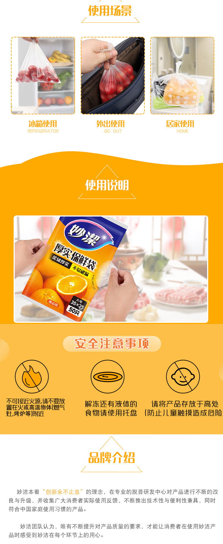 妙潔鮮度保持袋食品級家庭用袋冷蔵庫専用冷凍耐高温袋キッチンビニール袋