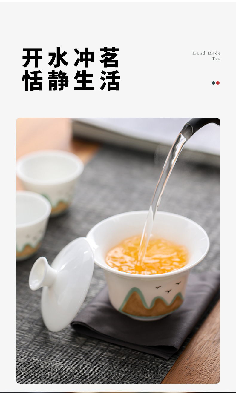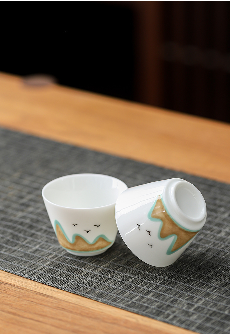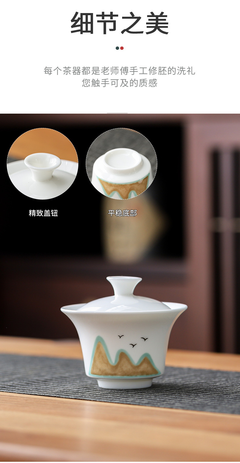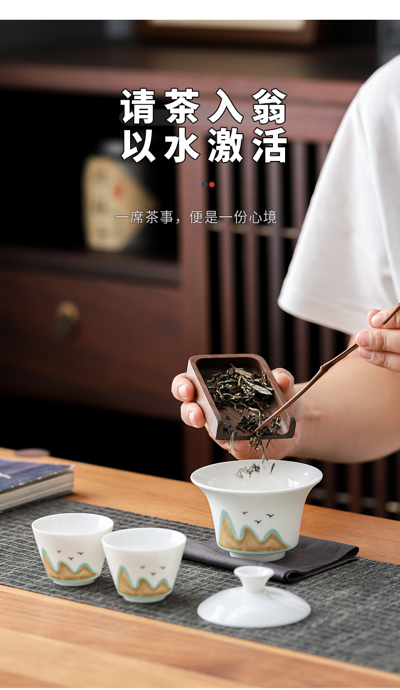 カラー 羊脂玉水墨遠山蓋碗2杯-旅行カバン,羊脂玉遠山蓋碗2杯-旅行カバン,羊脂玉純白蓋碗2杯-旅行カバン