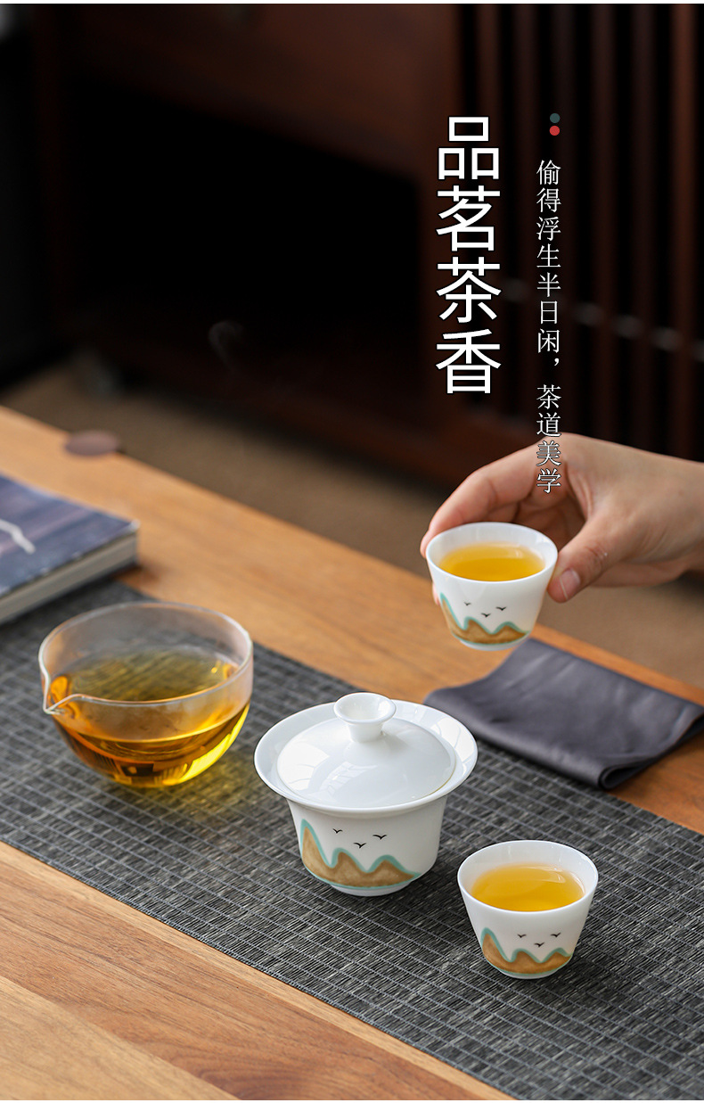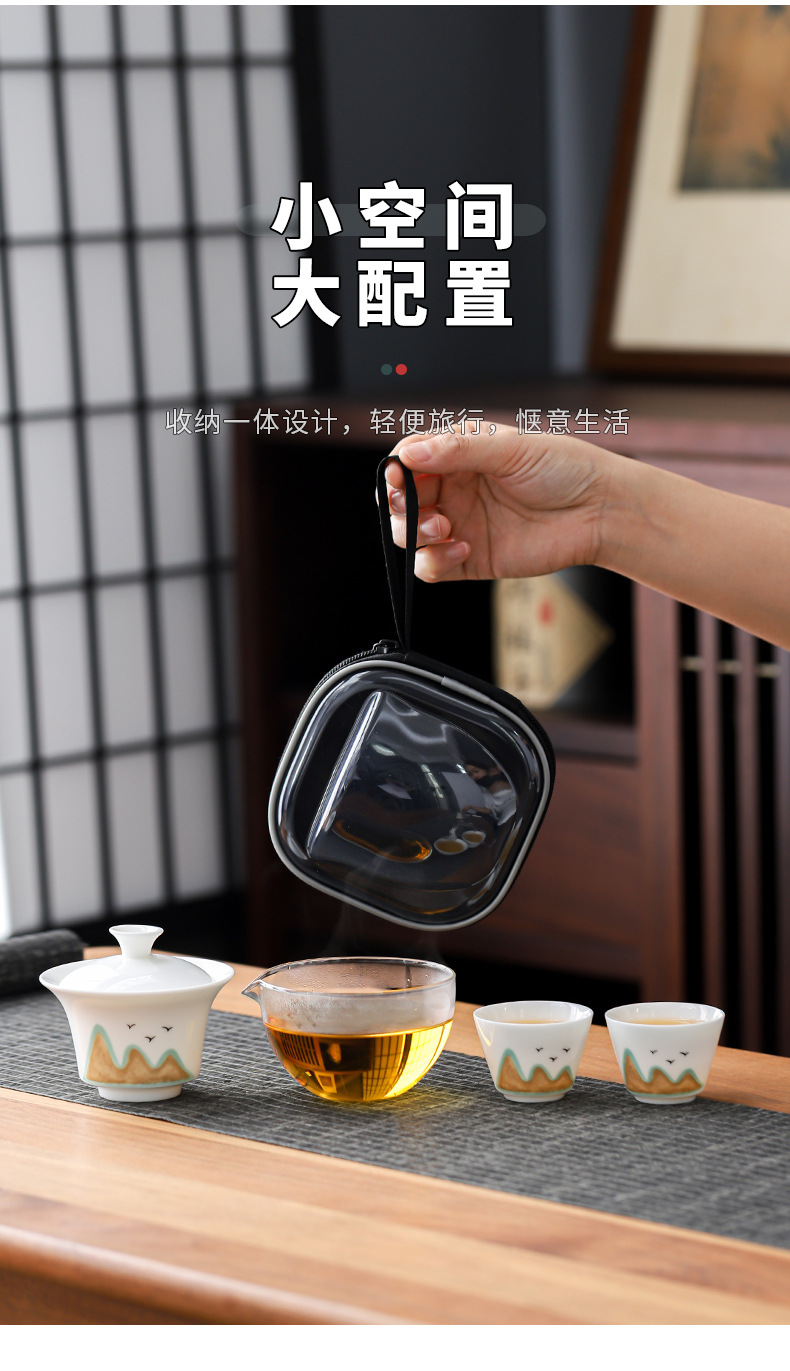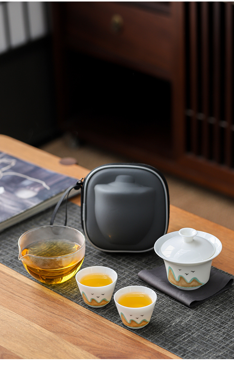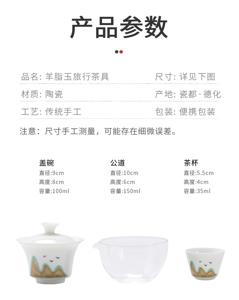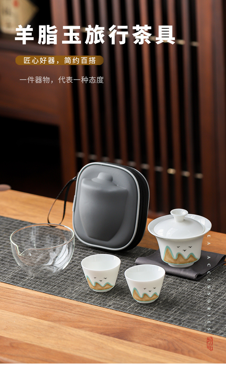 羊脂玉磁器白磁旅行セット一本三杯快客杯蓋碗携帯式屋外工夫茶器
