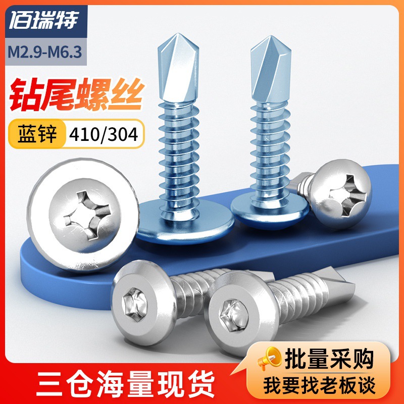 青白亜鉛十字丸頭ねじパッド付き華司自ドリルねじ304盤頭ドリル尾アリ釘M4.2M4.8