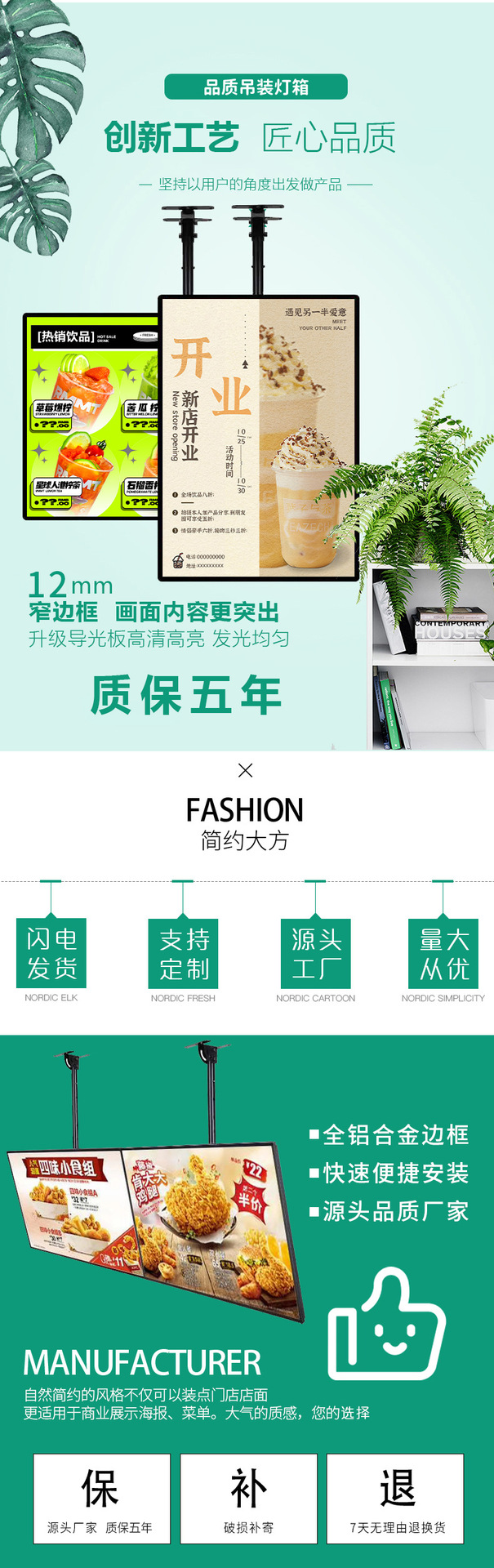 霊奇屋外吊り下げ式転写広告ライトボックス、飲食店、夜食店、店頭用、縦型、正方形、多層式、絵柄引き出し式ライトボックス