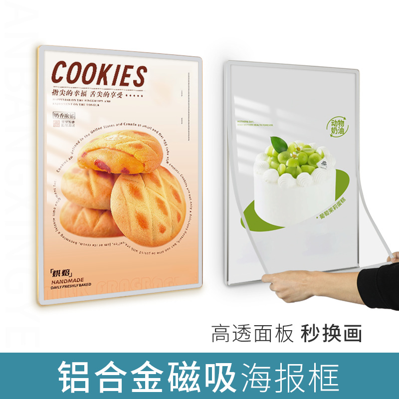 マグネットポスター枠丸い展示板フレームアルミ合金フォトフレームPVC展示枠壁掛けエレベーター広告枠工場