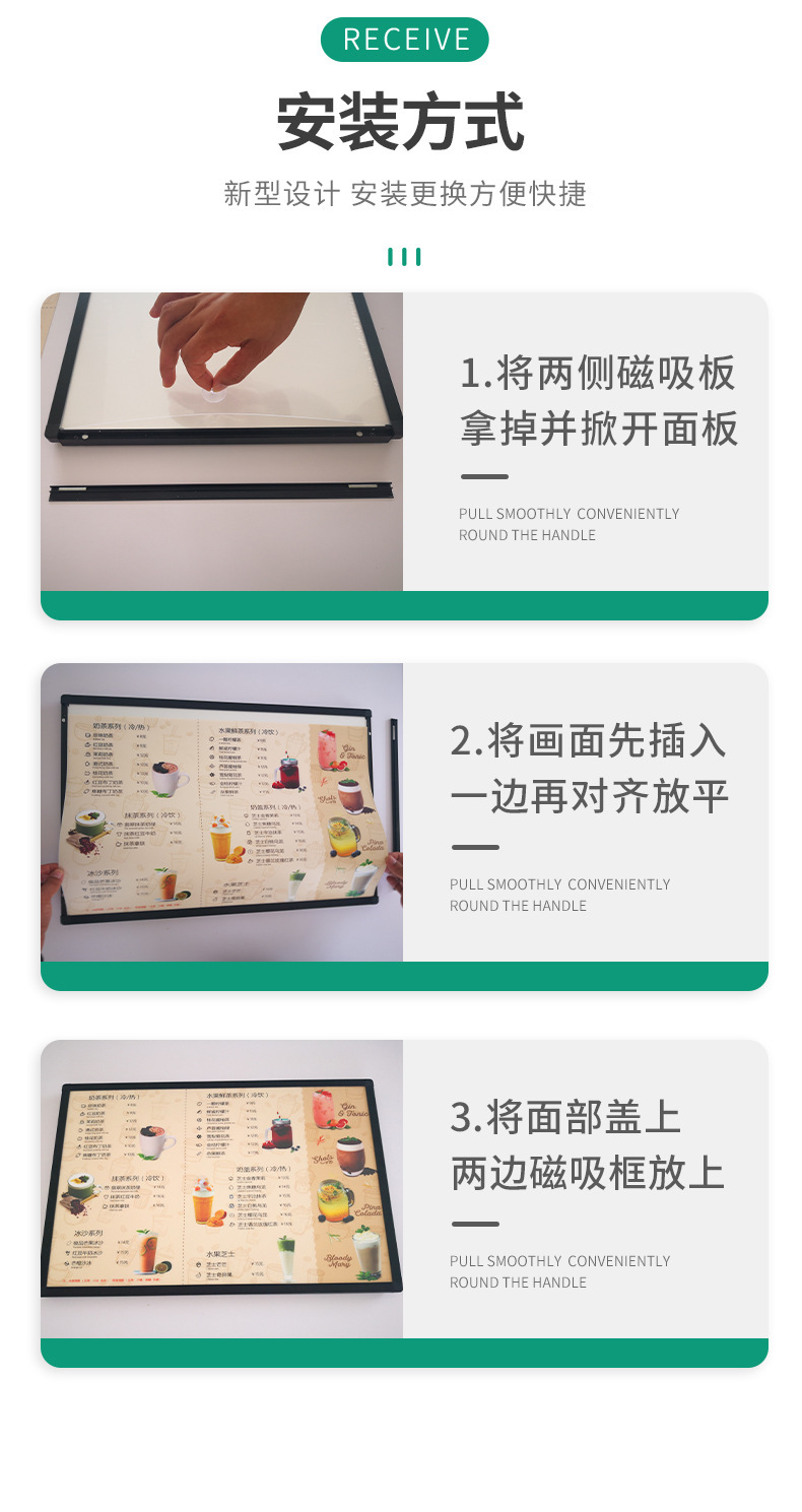 超薄型ライトボックス看板価格表壁掛け磁気テレビライトボックスミルクティーショップ発光注文ライトボックス