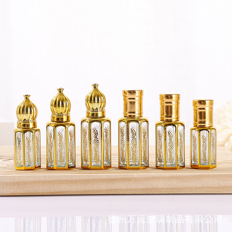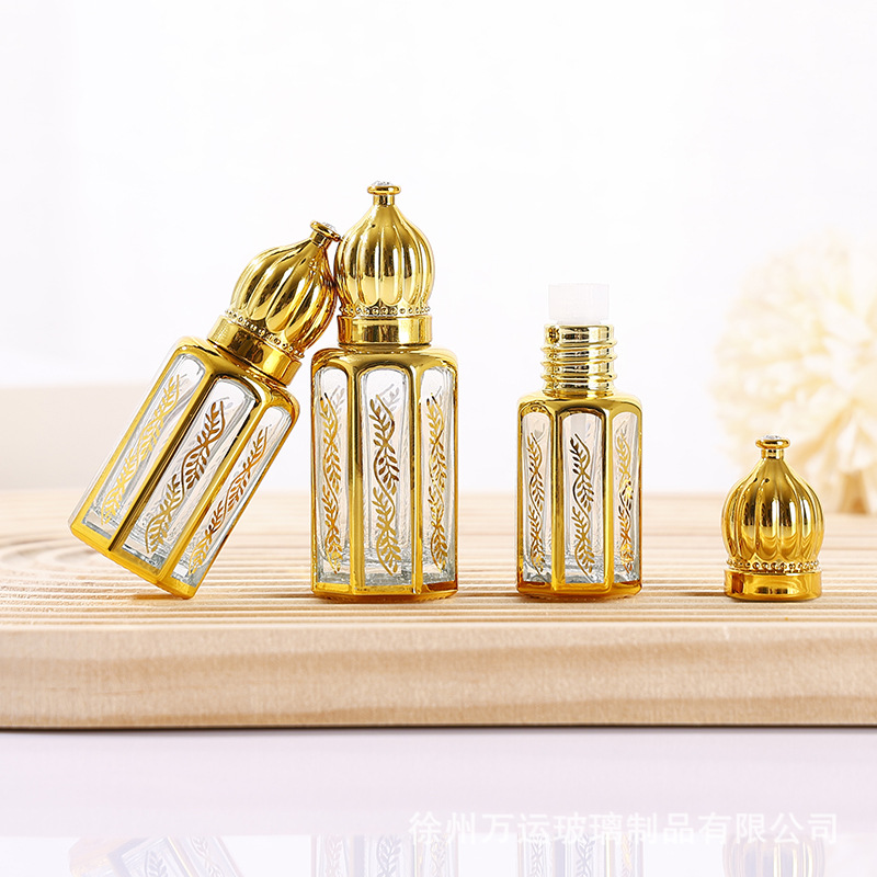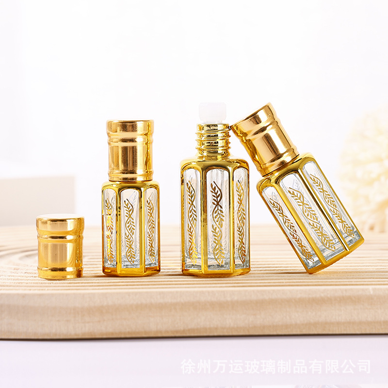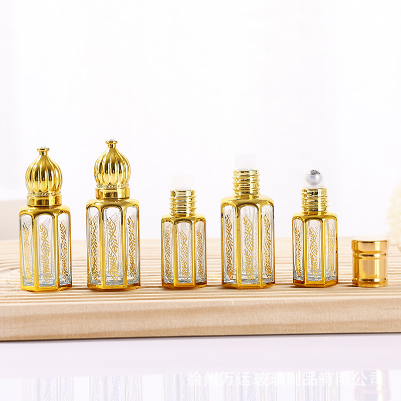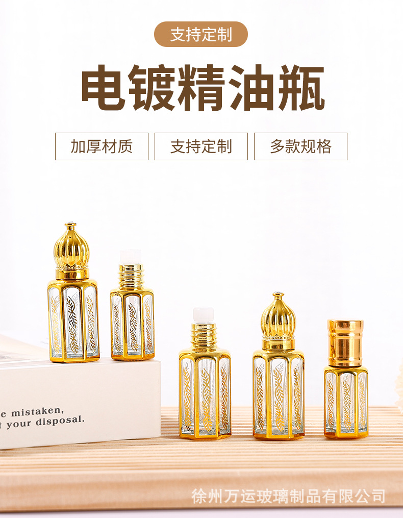 細高ガラス精油瓶八角形電気めっきボール瓶3ml 6ml 12ml軽贅沢目部マッサージビーズ瓶