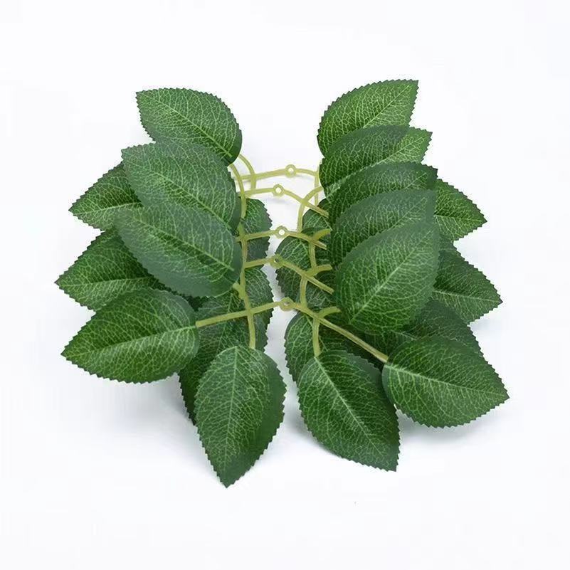 バラの葉の材料の絹布の頭飾りの花輪の葉のシルクのネットの花の装飾の手作りの花の造花のメーカーの卸売りをシミュレーションします。