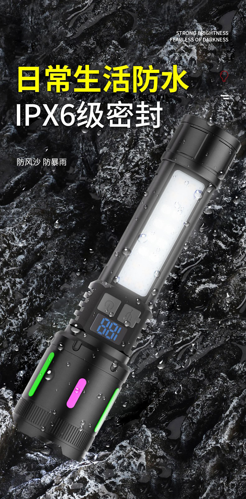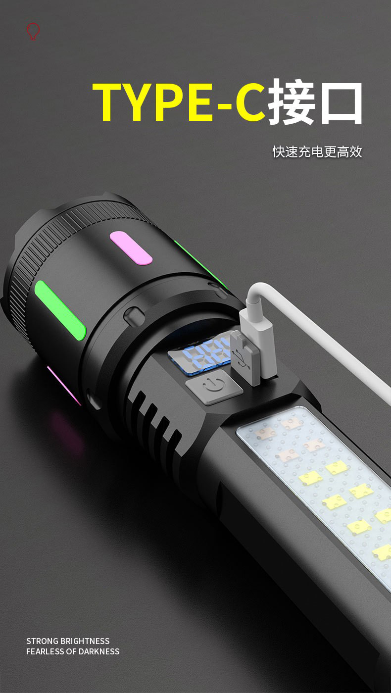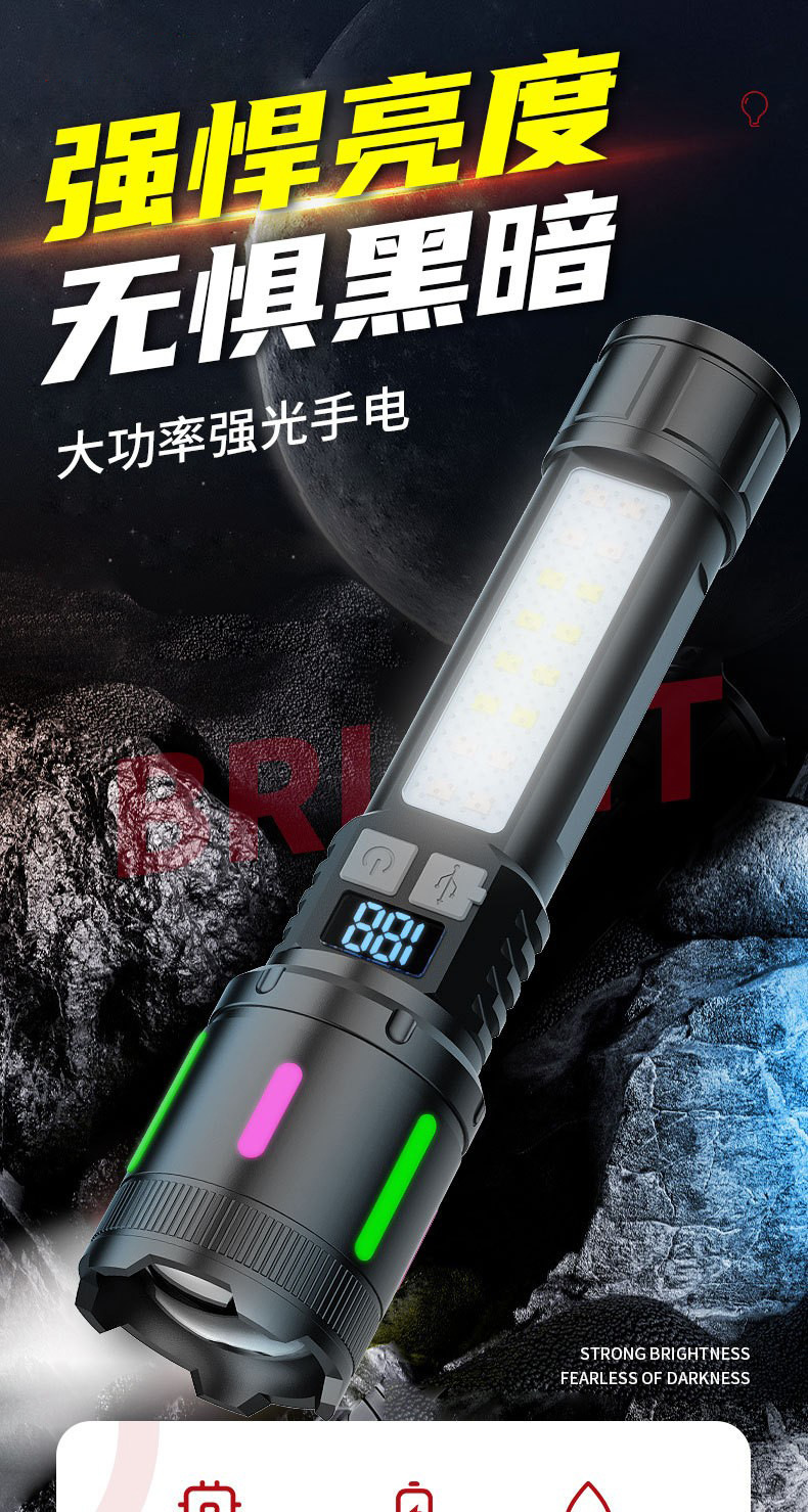 新型白レーザー超亮懐中電灯デジタル表示電力量ABS軽量伸縮ズーム赤青警報緊急サイドライト