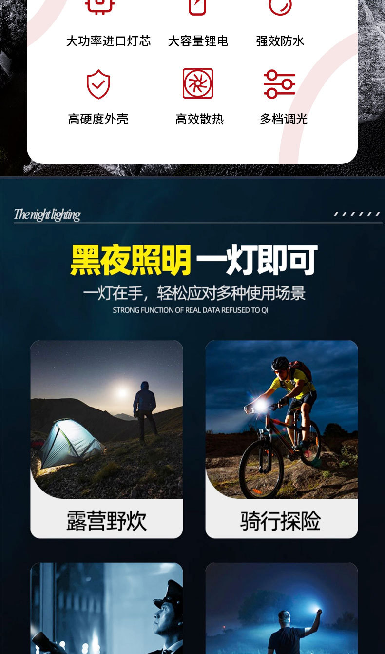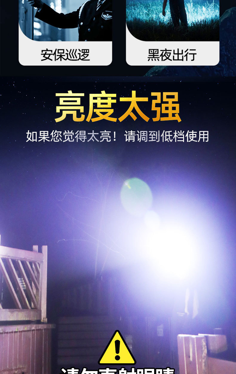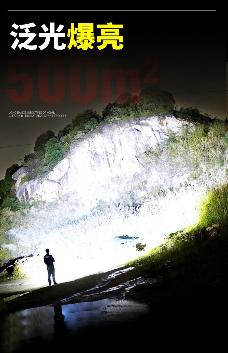 クロスボーダー起爆led強光懐中電灯屋外遠射USB充電伸縮焦点調整家庭用緊急懐中電灯
