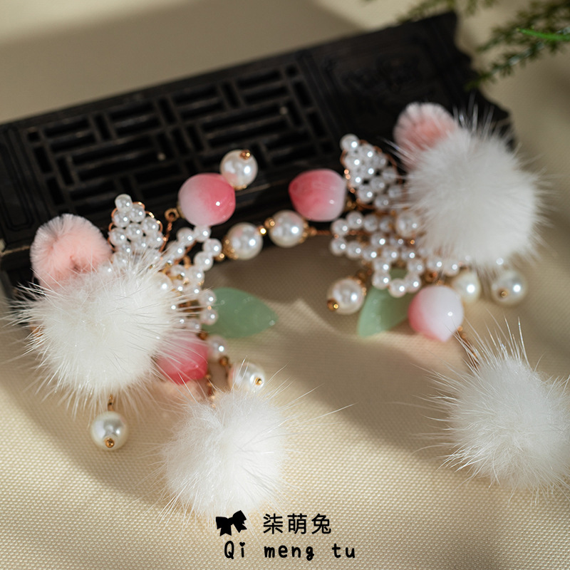 かわいい甘い子供のヘアピン毛玉流蘇髪飾り漢服対真珠髪飾り古風国風冬飾り