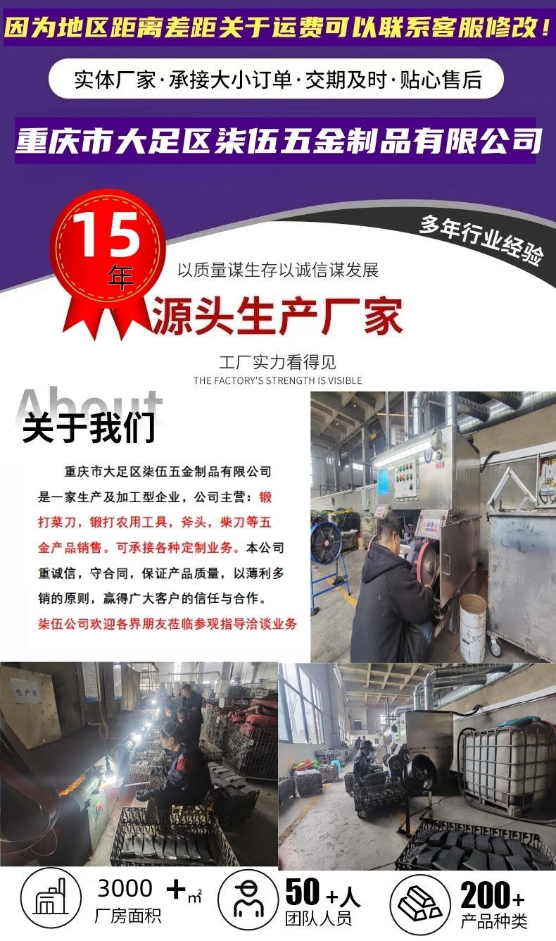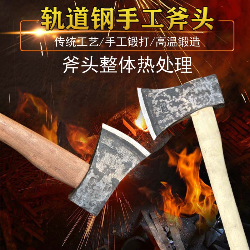 青崗木柄付き鋼製斧、薪割り用アウトドア農具、農村家庭用全鋼斧