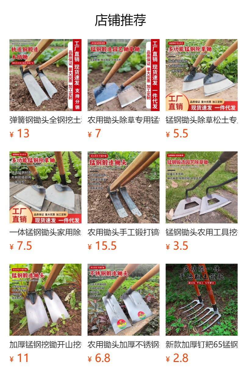 农用锄头手工锻打镐锄挖笋镐头开荒挖地翻土种菜农具老式全钢铁尖