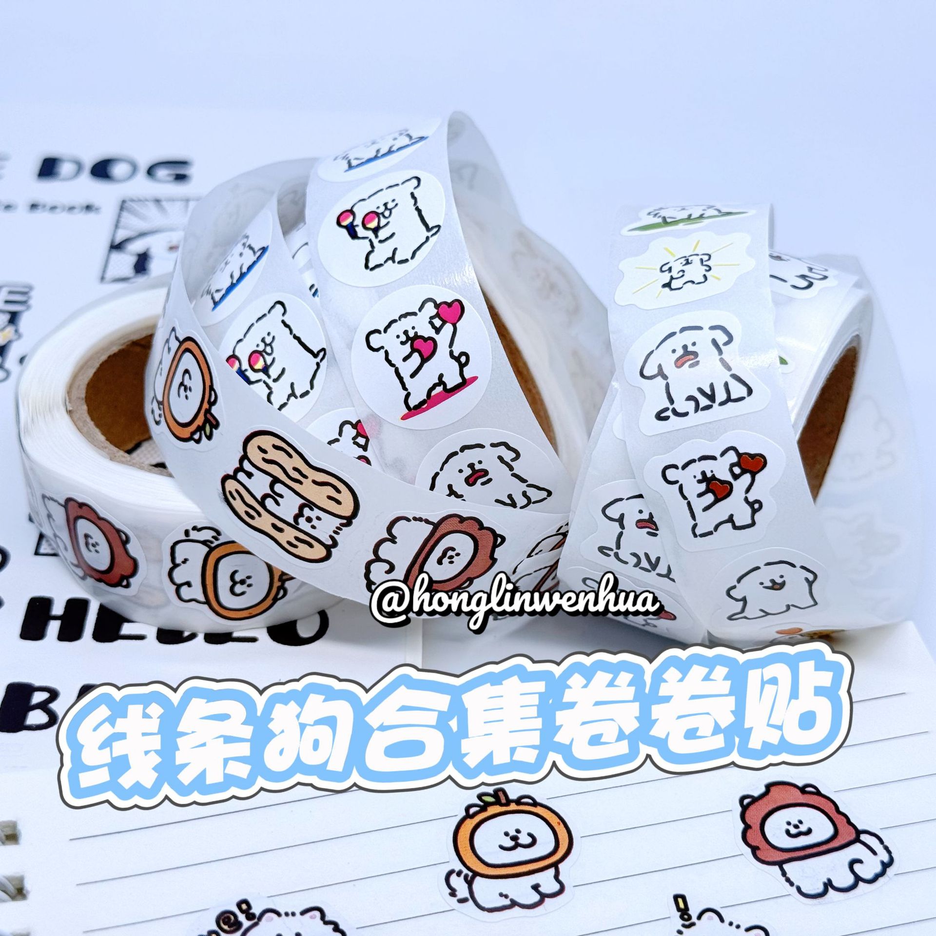 小红书爆款简约线条小狗卷卷贴ins新款封口贴胶带纸出卡贴纸手账