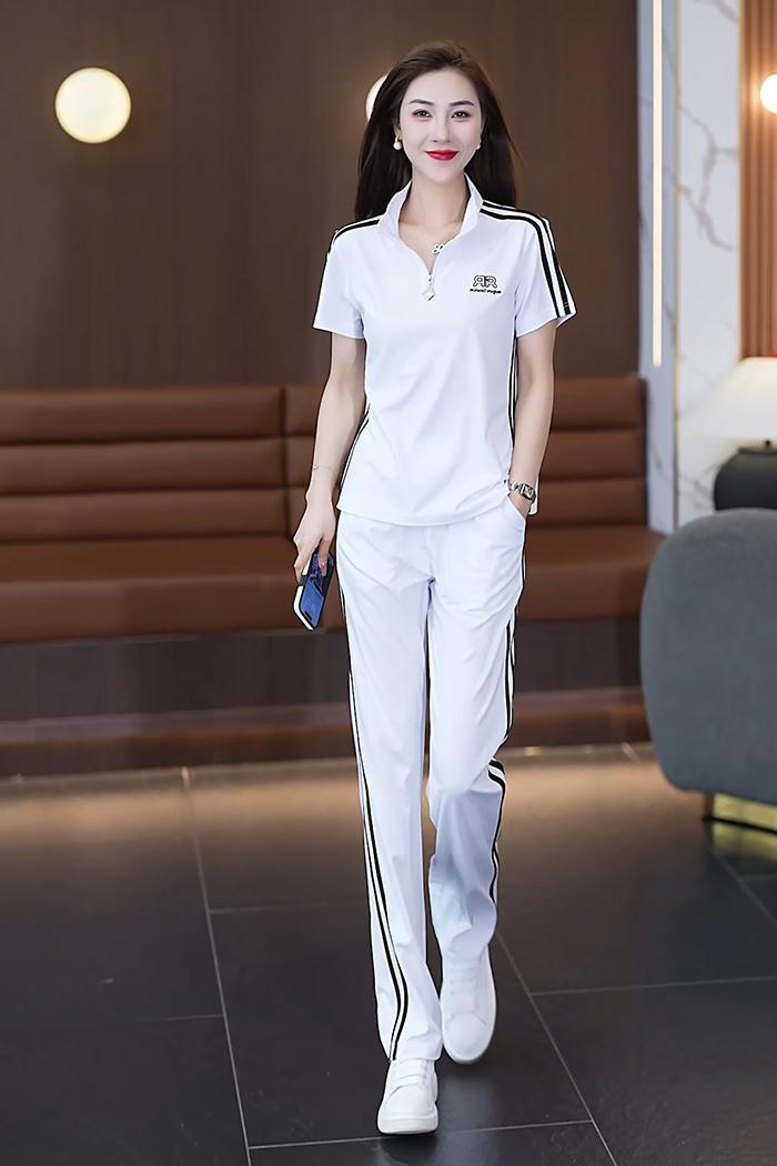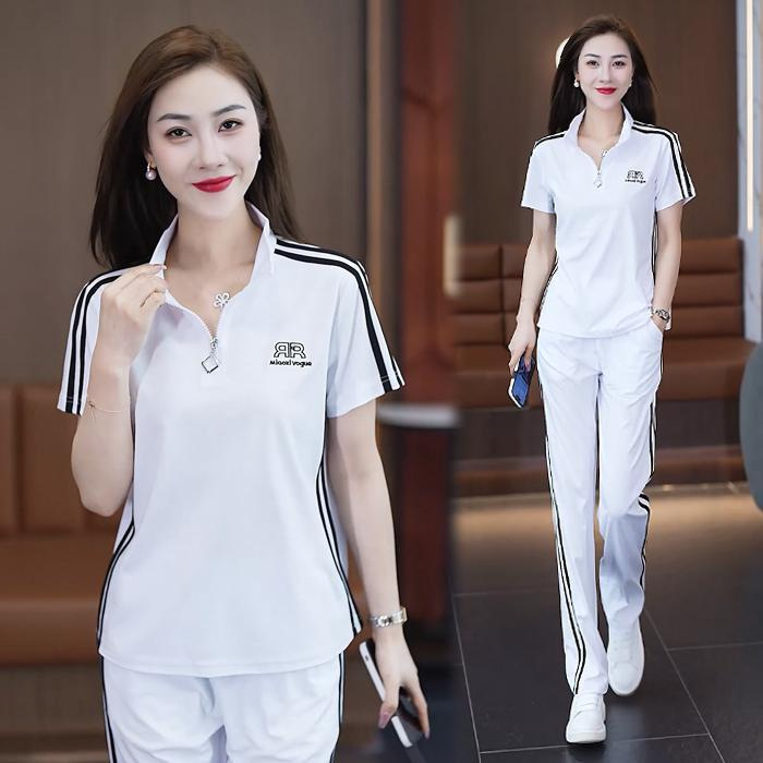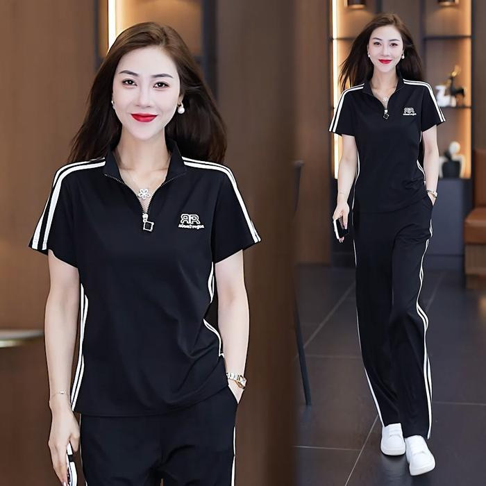 2024韓国版夏レジャースポーツスーツ女性ファッション新色ストライプ半袖上着洋気二点セット