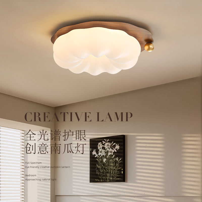 中世スタイルのカボチャの寝室の天井ランプフレンチクリーム目の保護子供部屋ランプレトロなクルミ木目ルームランプ