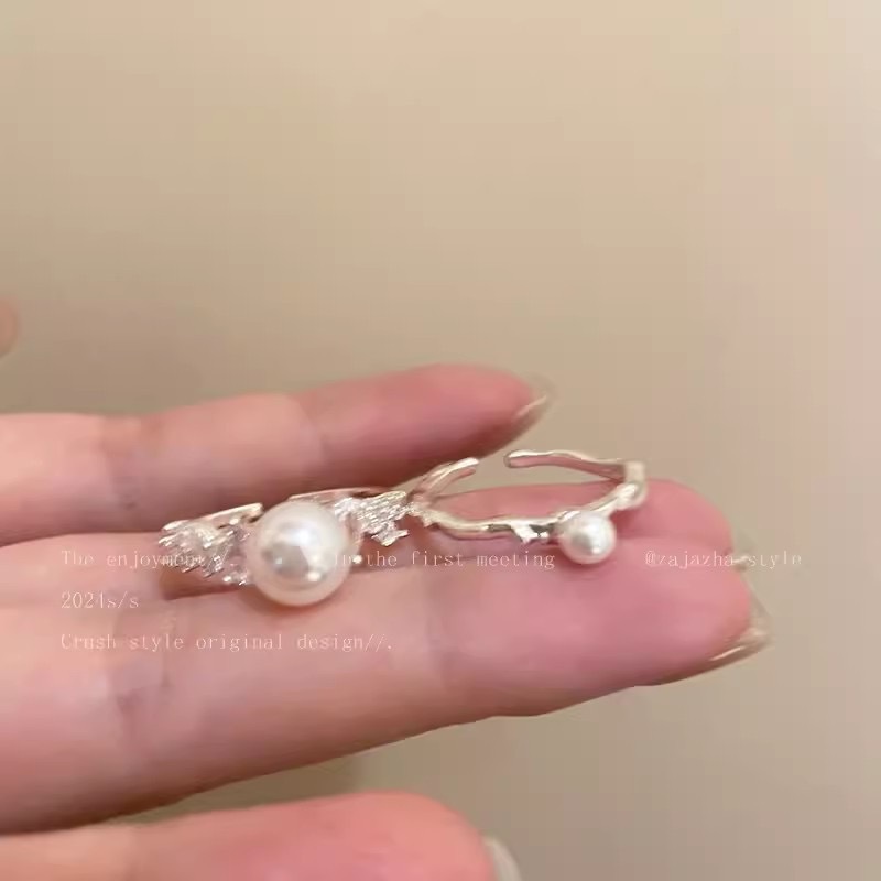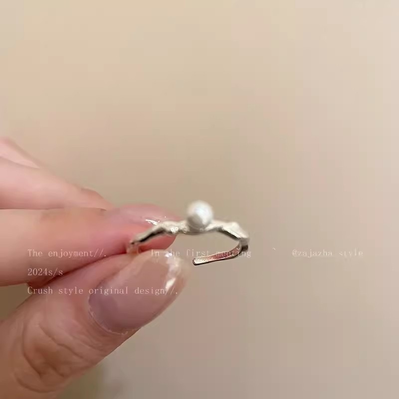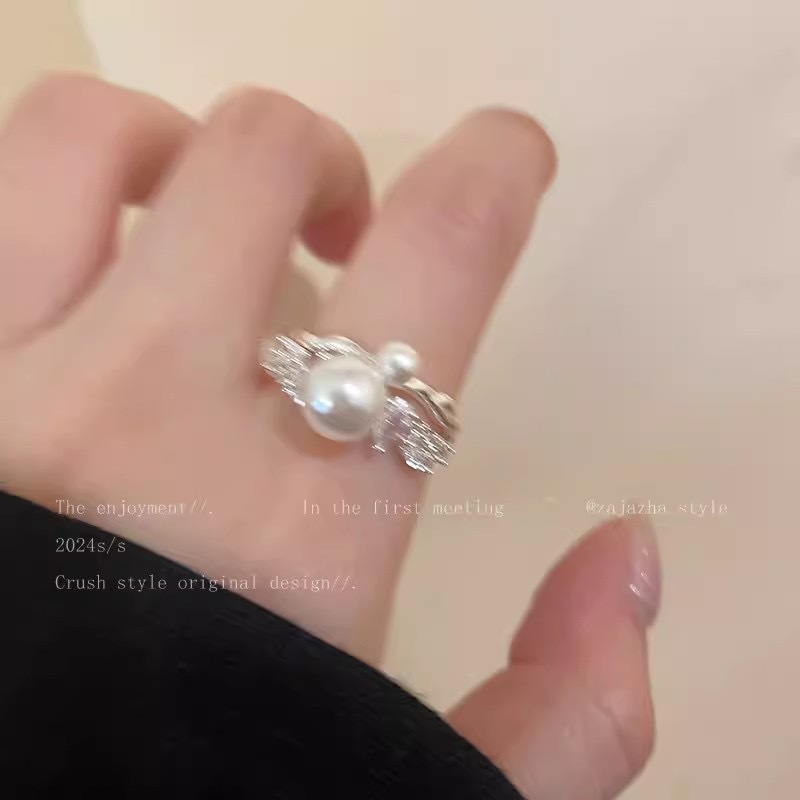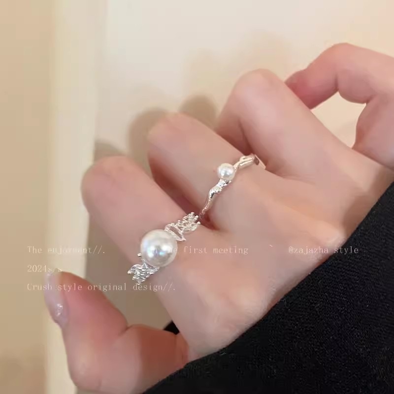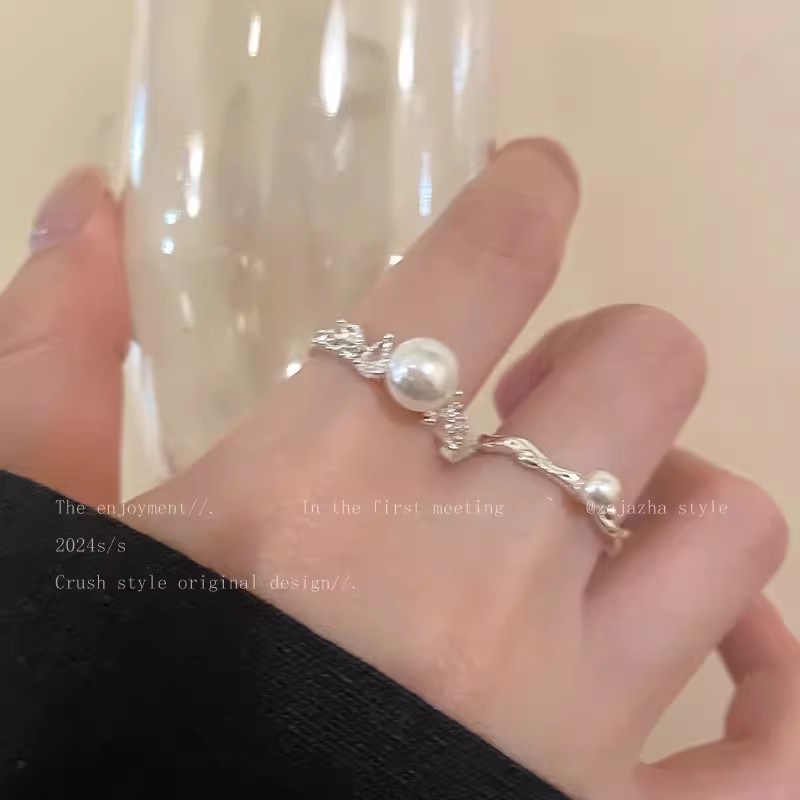 真珠のジルコンの口の指輪の女性の2024年の新型のフランスの気質の食指の指輪の小さい大衆の設計ネットの赤い指輪の潮