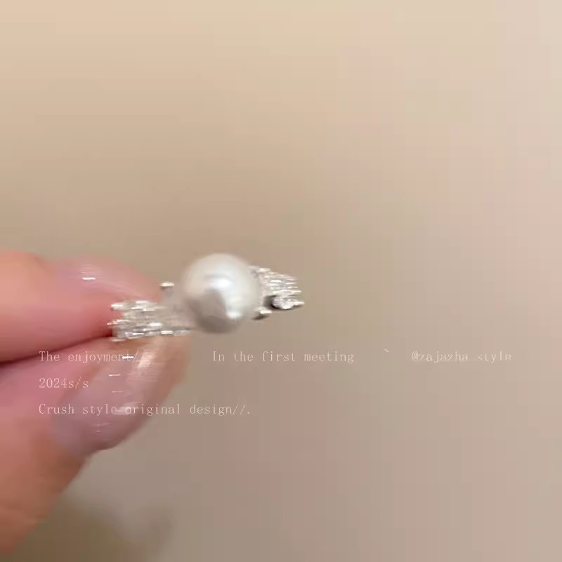 甜酷珍珠闪钻开口戒指ins小众设计轻奢高级感食指戒时尚个性指环
