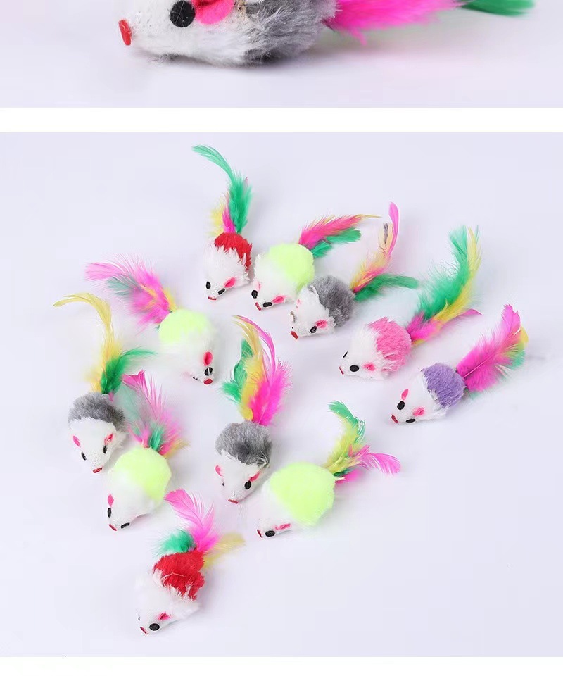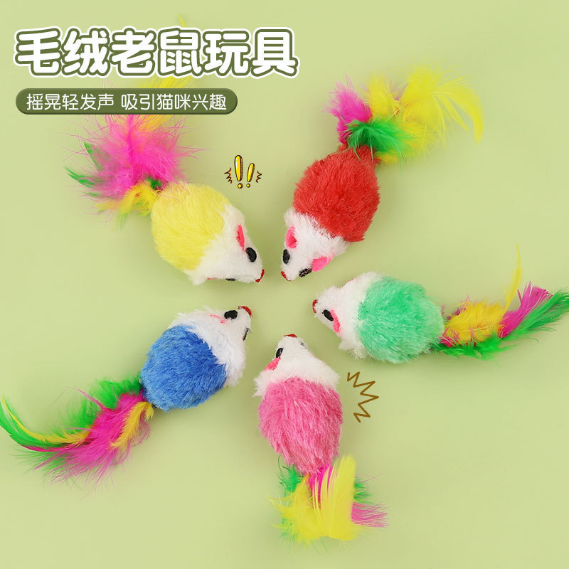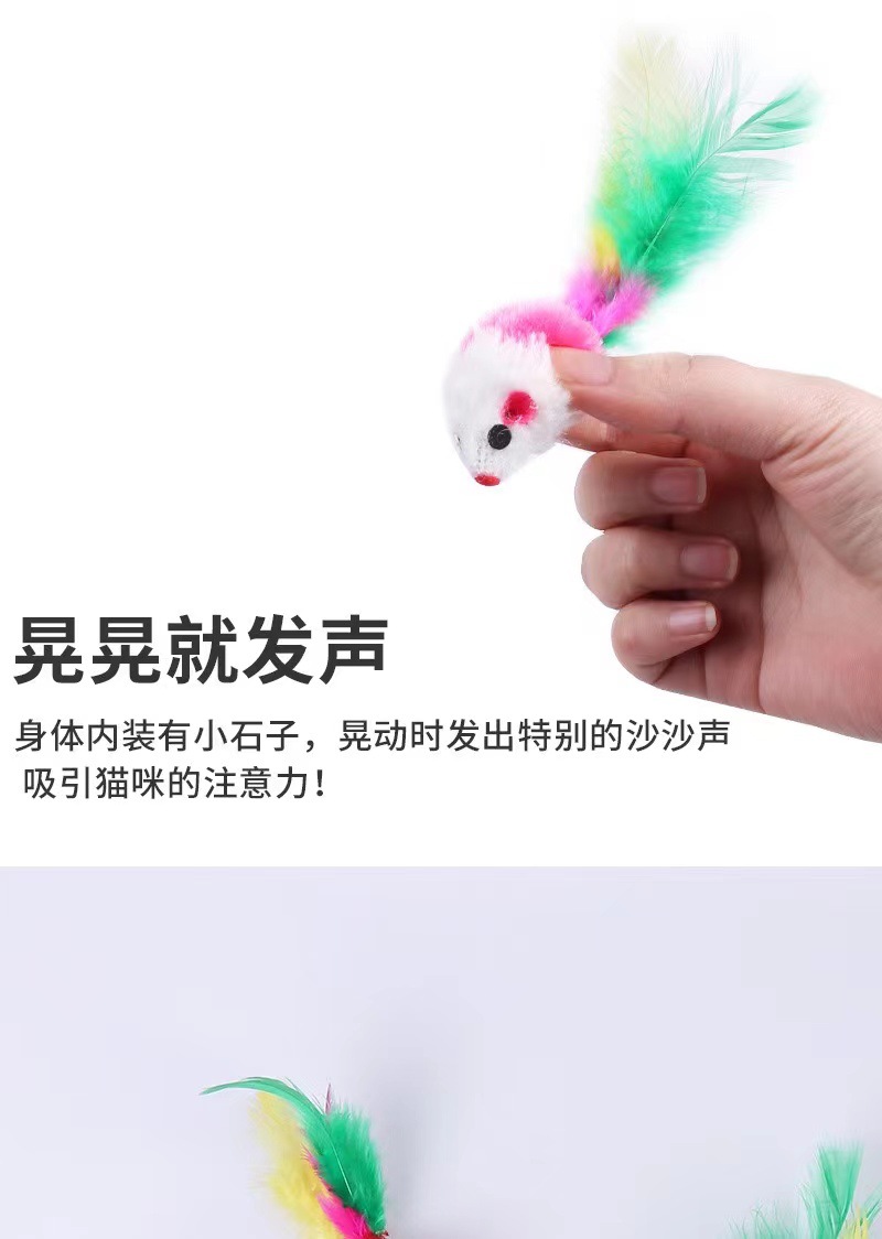 猫のおもちゃのぬいぐるみのネズミの7色の羽は猫のおもちゃのぬいぐるみの音の大きいネズミの猫を笑わせます。