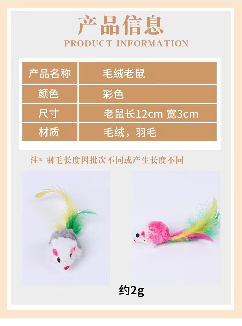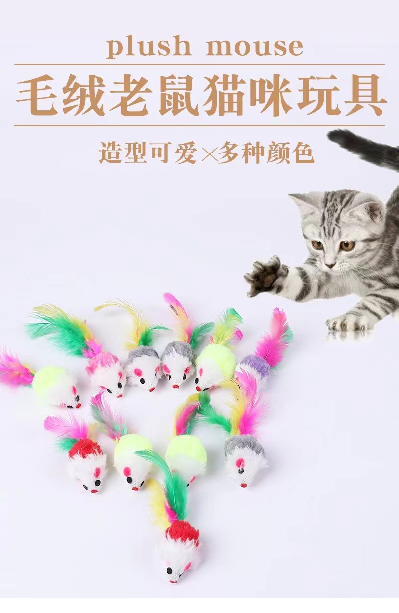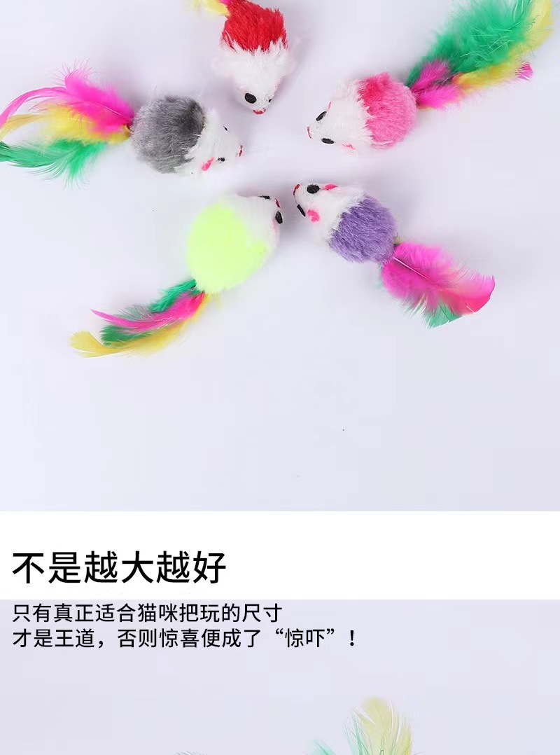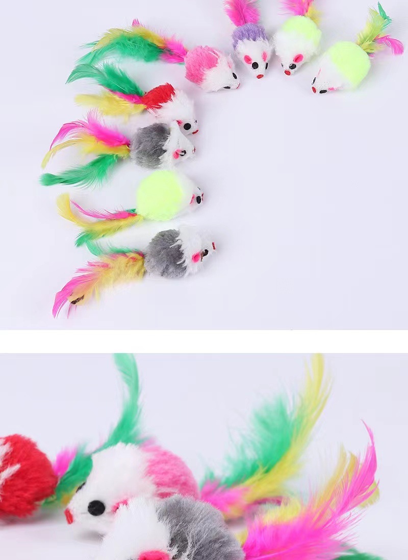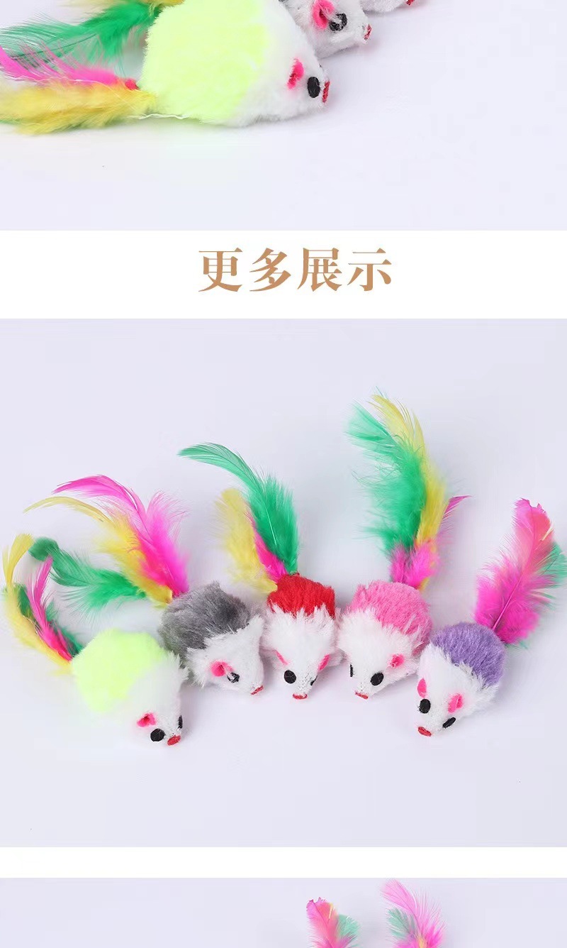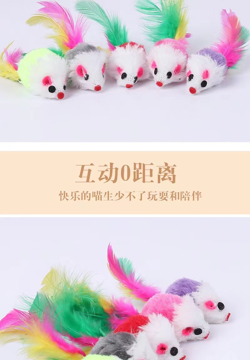 カラーの羽の猫のおもちゃは小さいネズミの猫のおもちゃのペットのぬいぐるみのネズミをシミュレーションします。