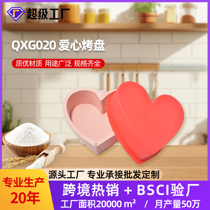 跨境大号硅胶蛋糕模爱心慕斯模具耐高温10寸8寸心形蛋糕胚模具