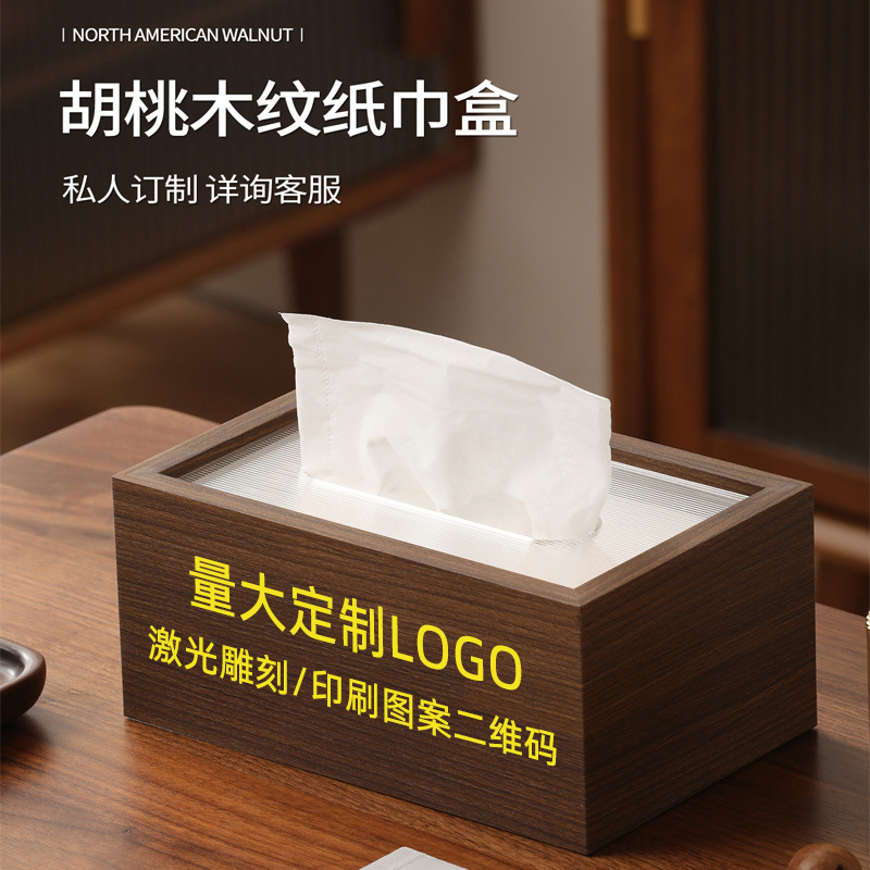 高级感木质纸巾盒客厅茶几新中式抽纸餐巾收纳盒饭店酒店加印LOGO