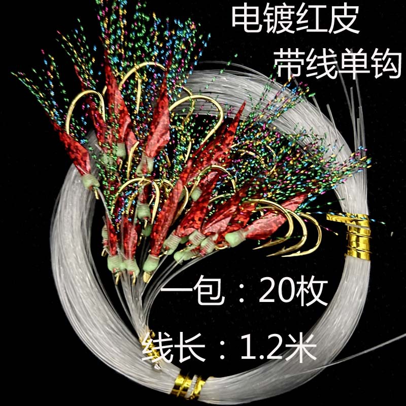 海钓镭射红皮单线 金丸世钩 带线单钩线 翘嘴 黑头海钓船钓钩20枚