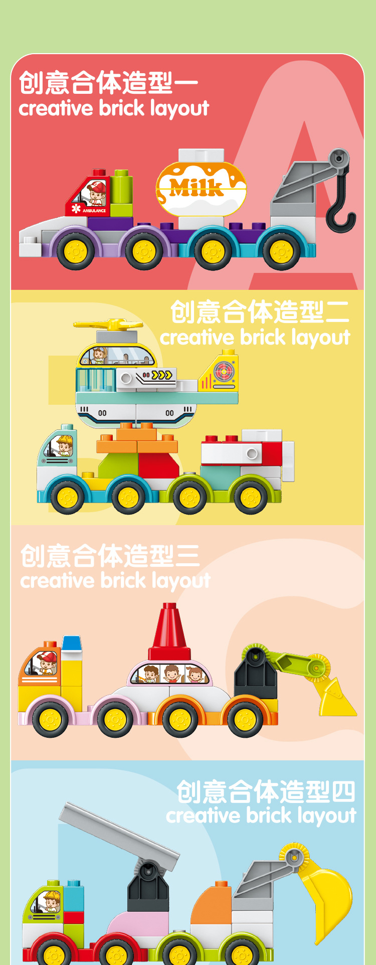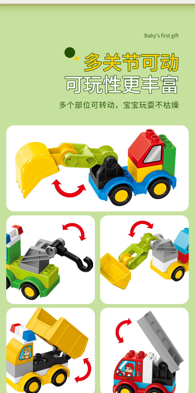 兼容乐高大颗粒百变积木工程小汽车儿童益智力宝宝玩具幼儿园