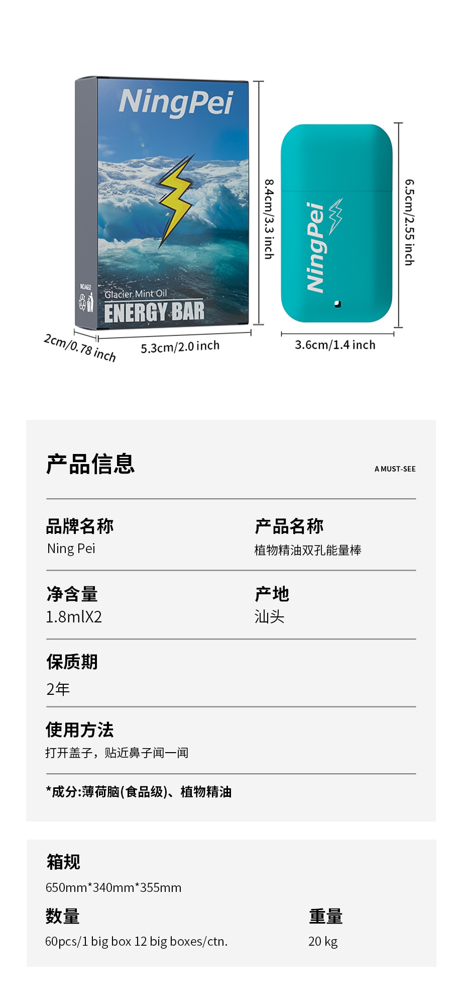 NingPei ライトニング ストーム デュアルコア ノーズパス リフレッシュ エナジー バー 抗疲労鼻吸入タイプの国境を越えた特別供給