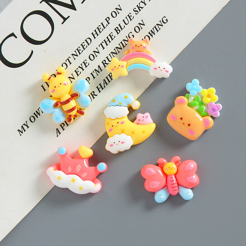 かわいい雲の星の虹の樹脂の小さい部品の手作りのdiyの携帯の箱のコップは穴の靴のボタンの部品を貼ります。