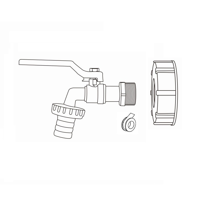 配置:110mm延伸PE管 + iBC吨桶转接盖(粗牙S60 * 2)+S60止水垫片(2只) + 3/4x1 合金皮带水龙头(1只)+ PP 奶嘴出水嘴(1只)+ 7米止水生料带(1卷)