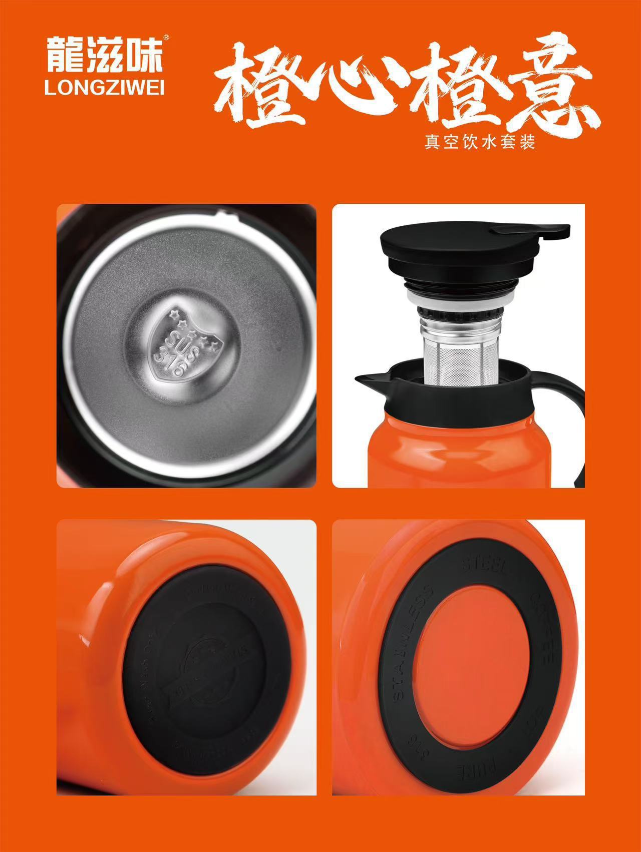 Shishi Ruyi カップとポットセット 316 ステンレス鋼真空飲料水旅行シチューポット柿缶セットロゴカスタマイズ
