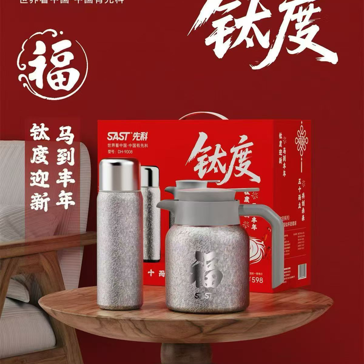 先科纯钛保温杯保温壶便携式大容量闷茶壶保温杯套装商务礼品批发