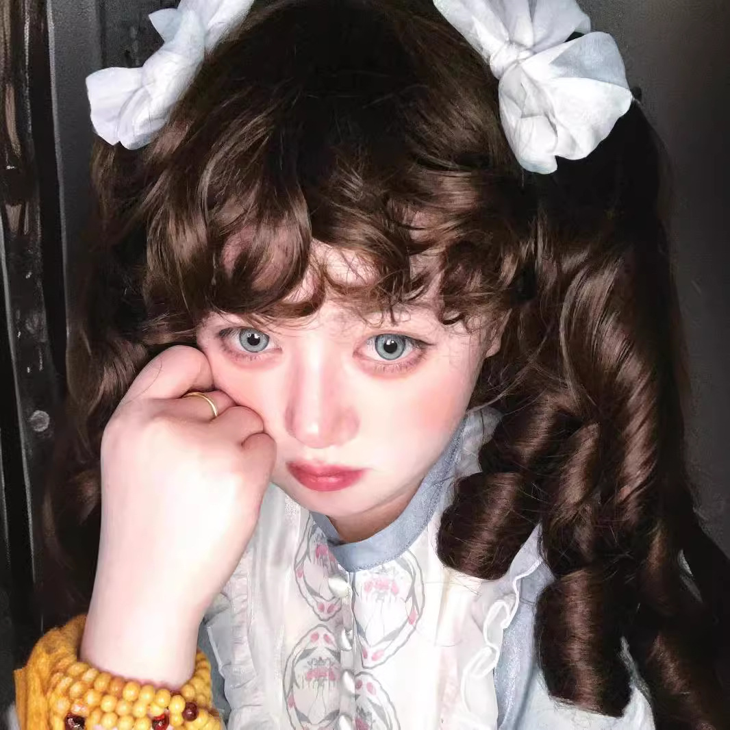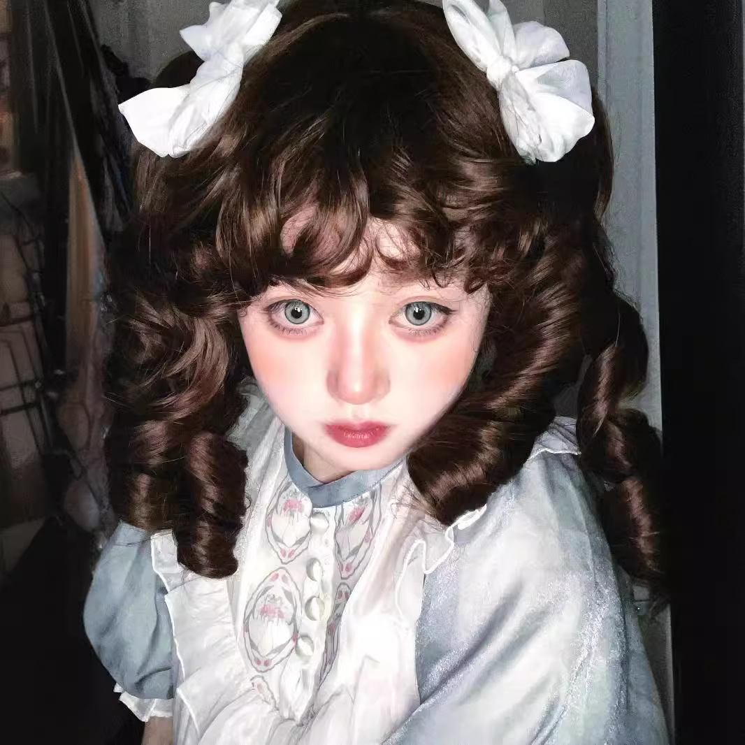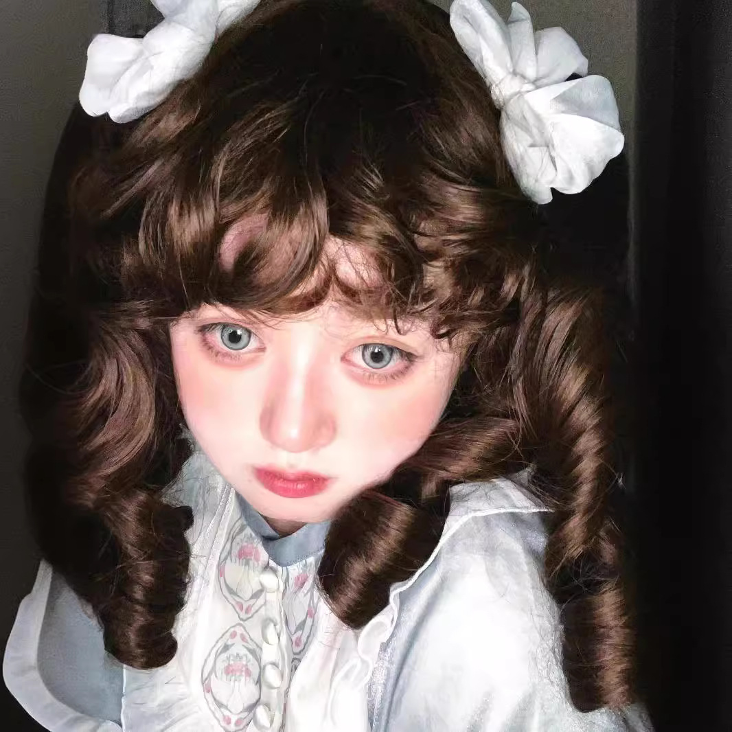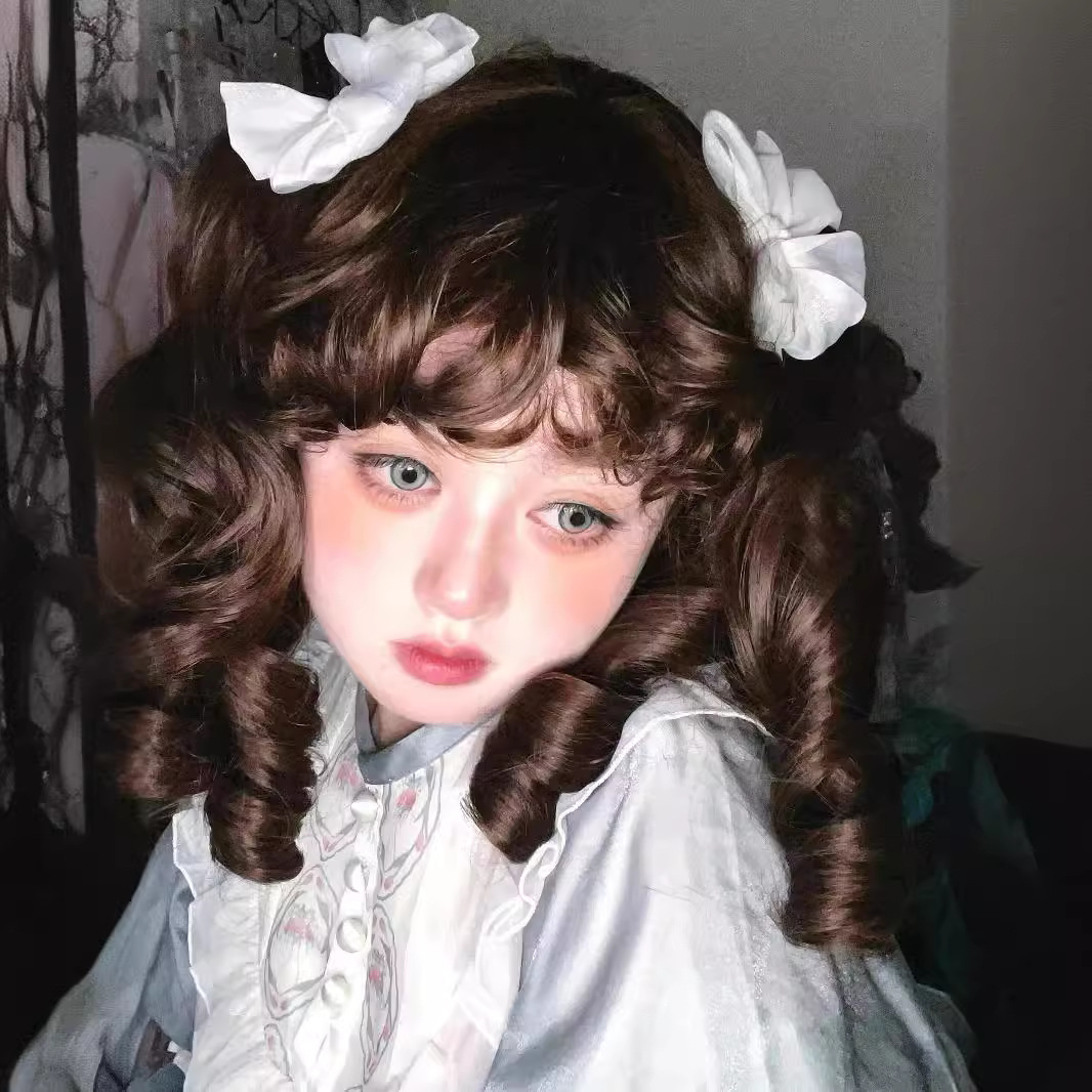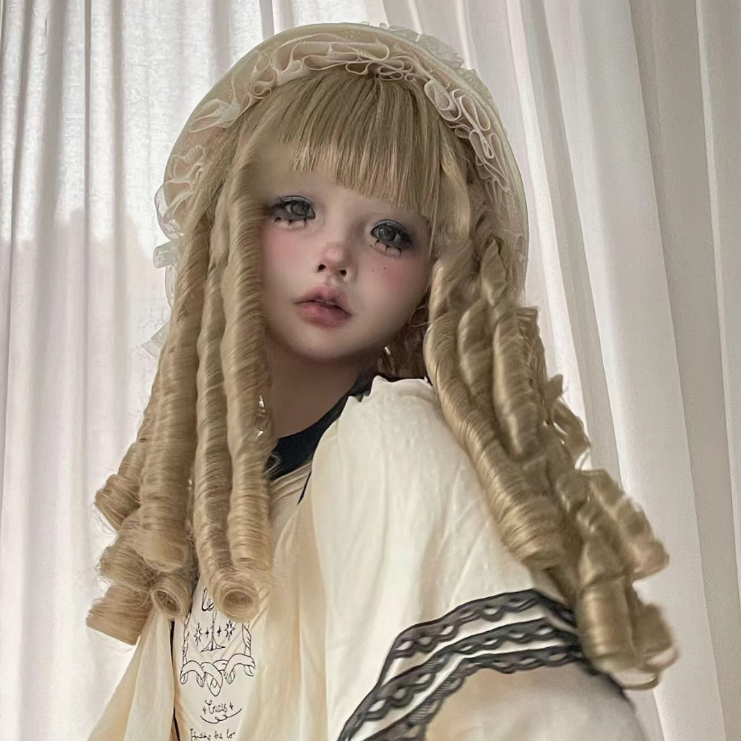 假发女洛丽塔lolita抓夹双马尾罗马卷全头套doll感金色黑棕直卷发