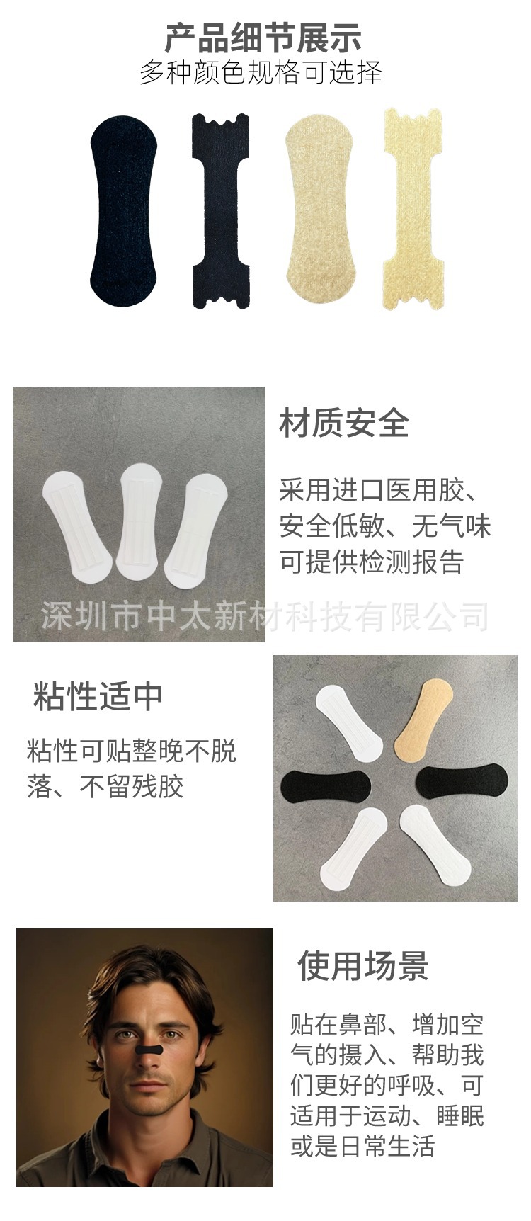 工場の通気鼻は国境を越えた弾力的な支持条を貼り、物理的に呼吸を拡張していびきを止め、鼻詰まりを緩和します。
