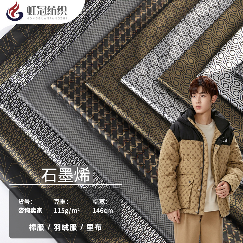 グラフェン導電性加熱シート生地遠赤外線蓄熱ブラックゴールドブラックシルバーダウンジャケット暖かいハニカム裏地生地