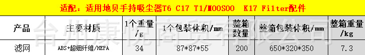 适用 MOOSOO 无线手持吸尘器 K17 Filter过滤器HEPA 滤网 滤芯