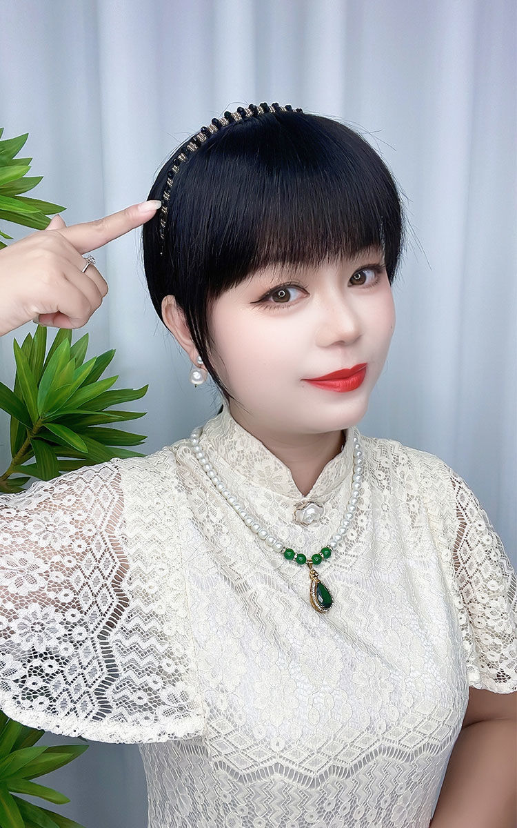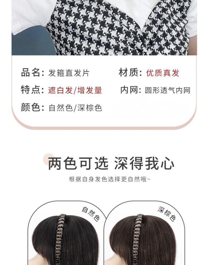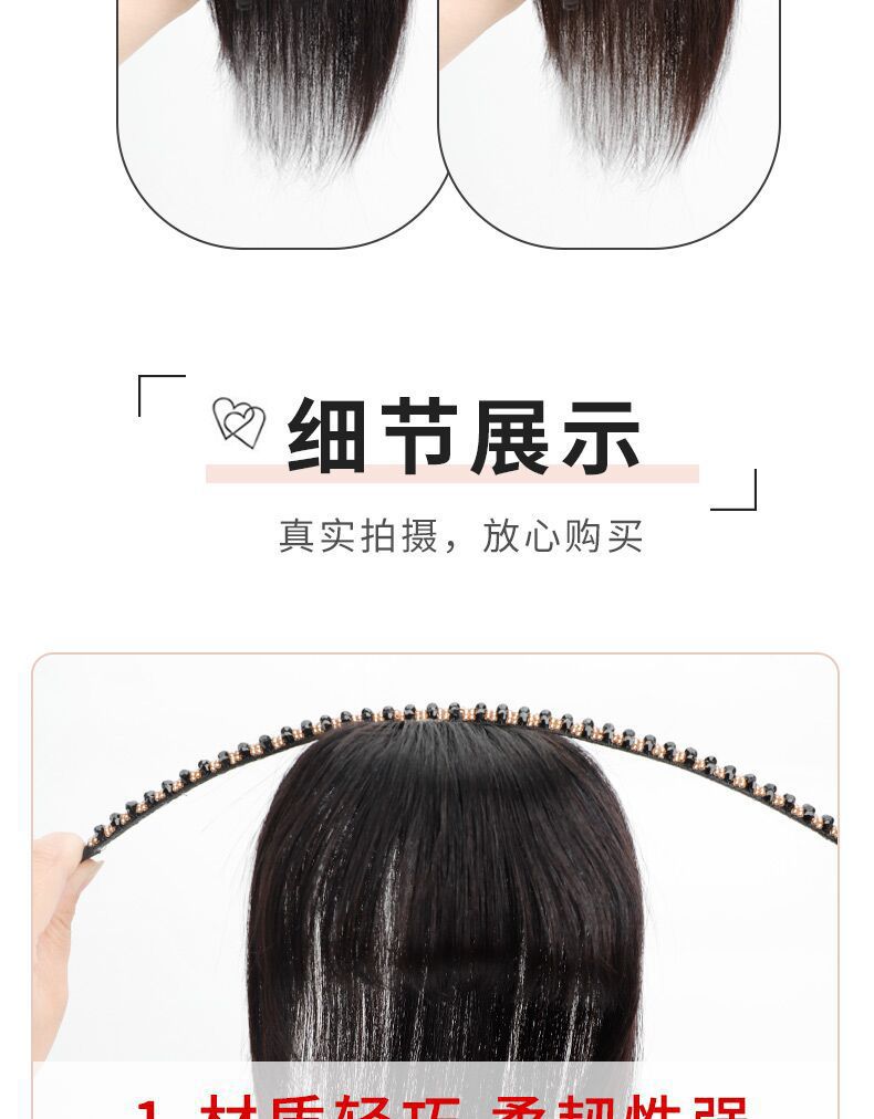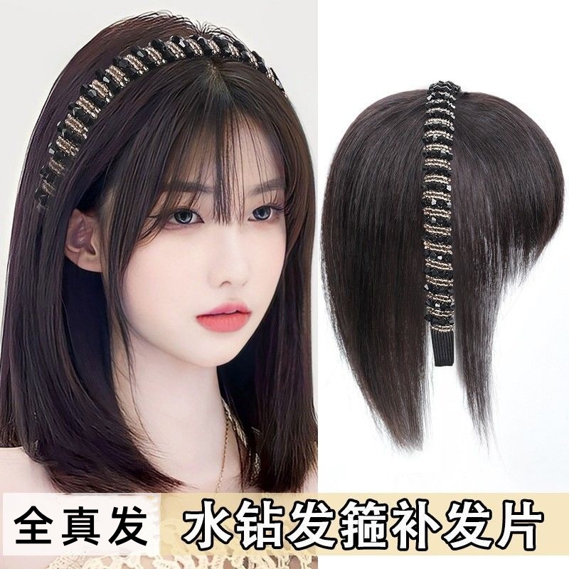 刘海假发女水钻发箍真发补发块增发量自然蓬松遮盖白发头顶假发片