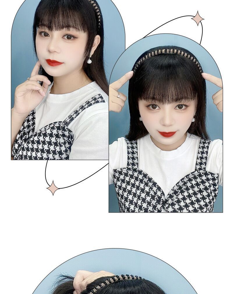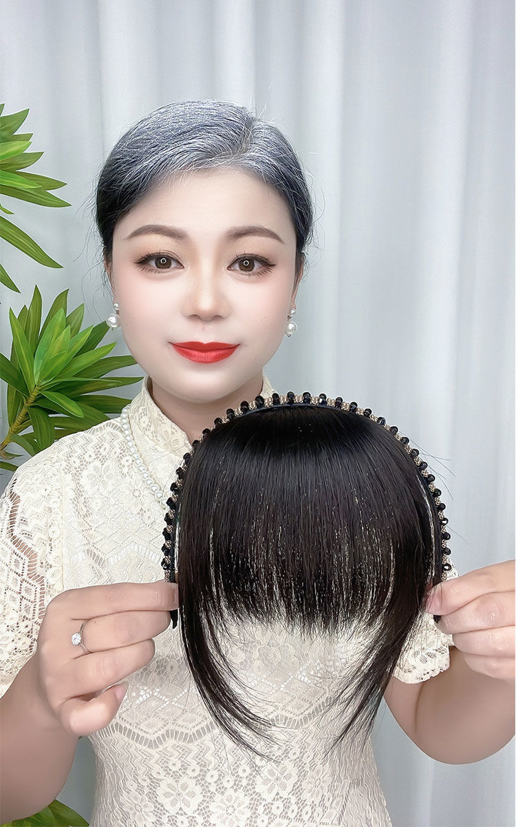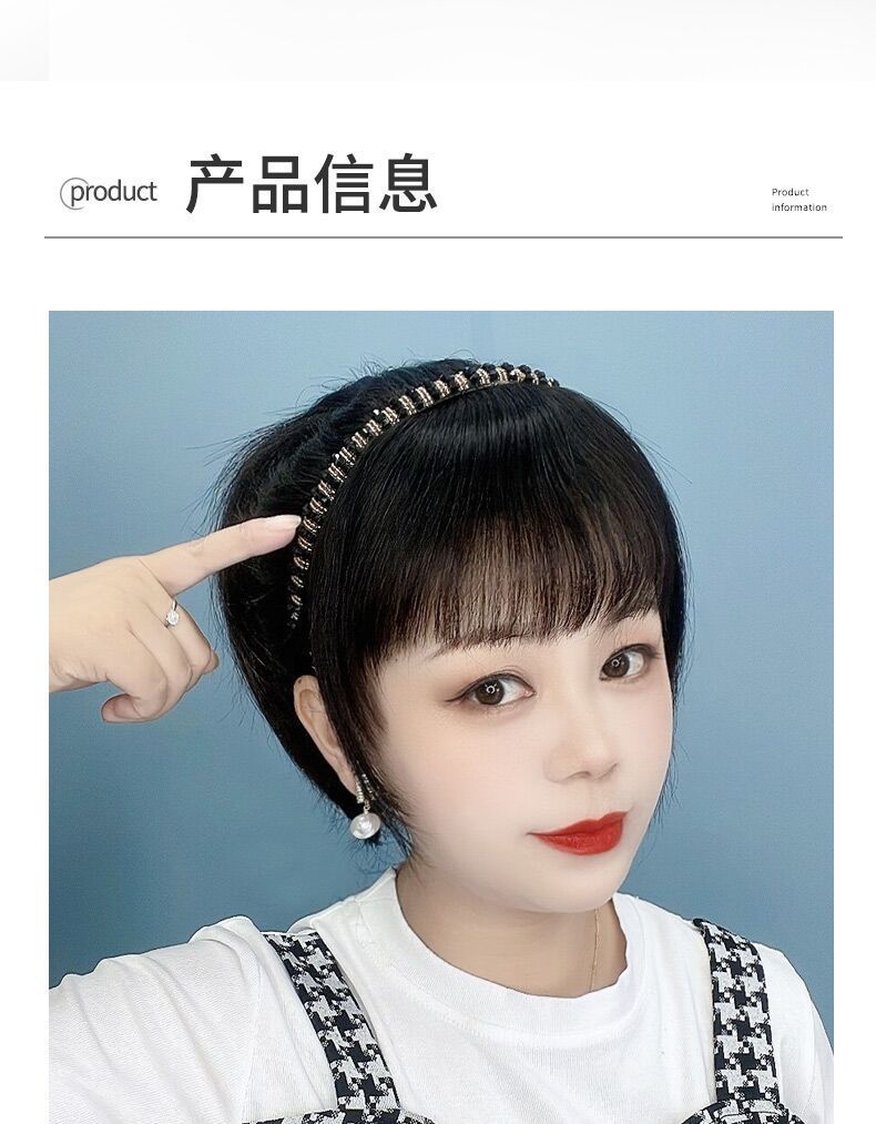 ラインストーン付きヘアフープ、前髪ウィッグ一体型、女性用額の白髪隠し、頭頂部補充ウィッグ、年齢軽減ツール
