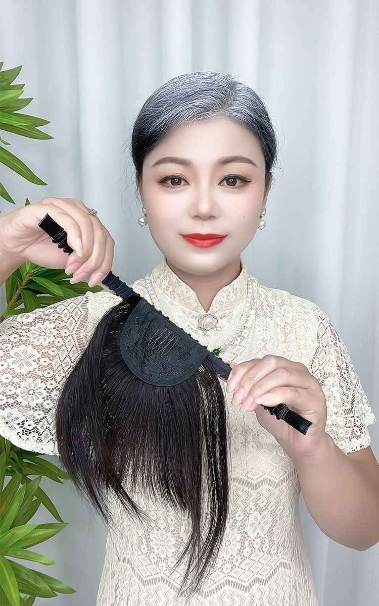 3Dフレンチエアバングス人工毛ウィッグ 女性用 自然な跡が残らない目立たない頭頂部補充ウィッグ 白髪隠し前髪