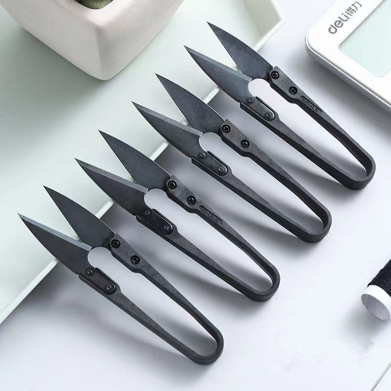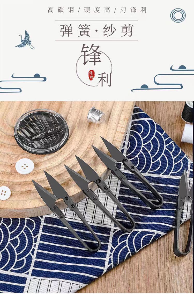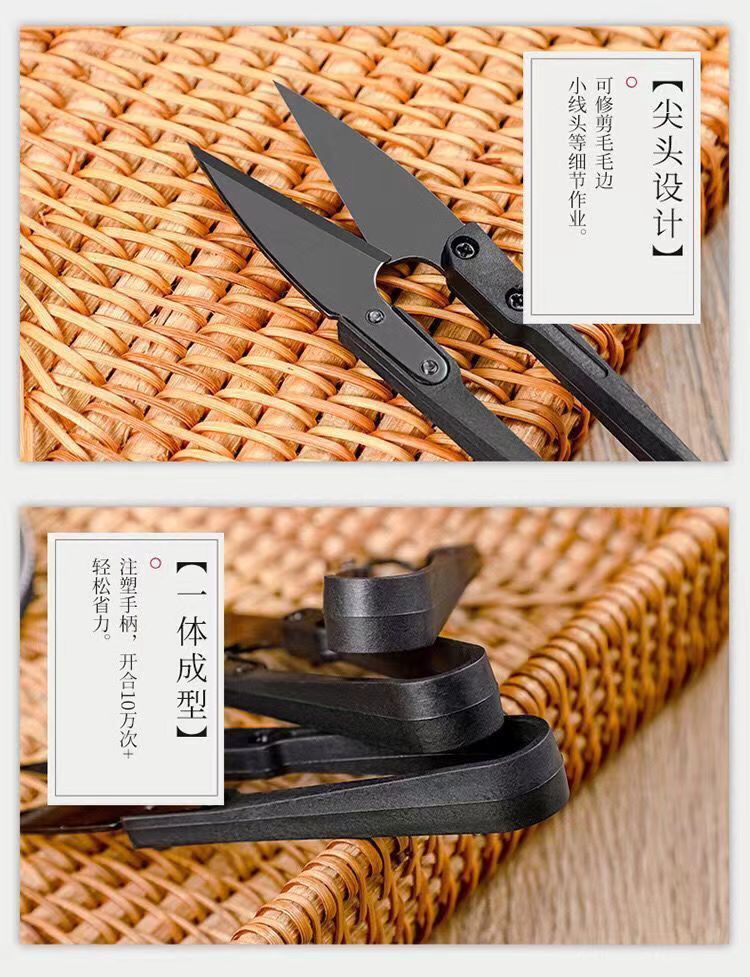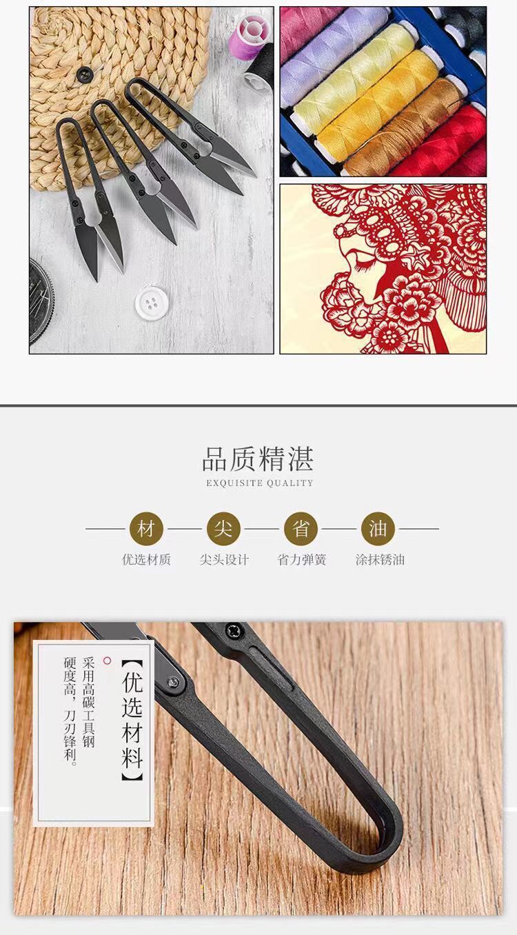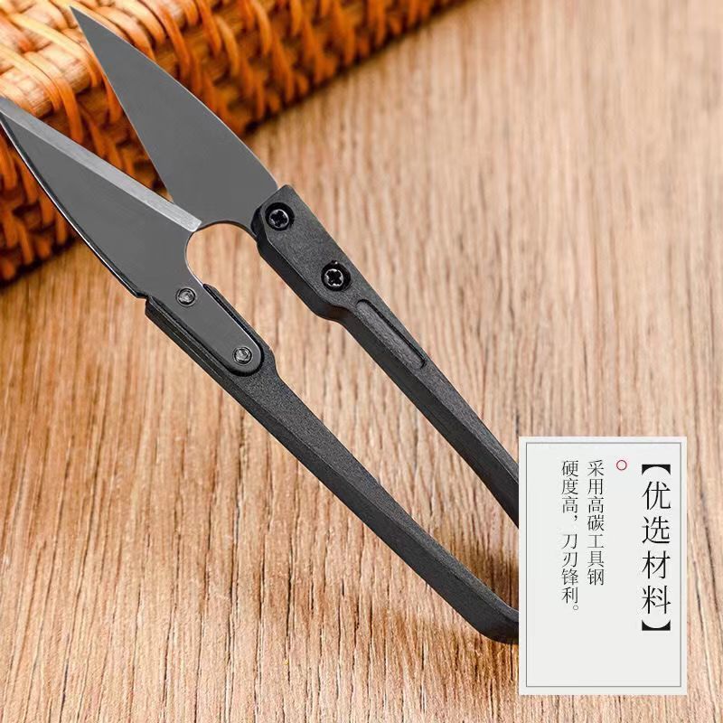 黑碳钢小纱剪修剪线头小剪刀十字绣U型剪弹簧剪刀不锈钢u型剪刀