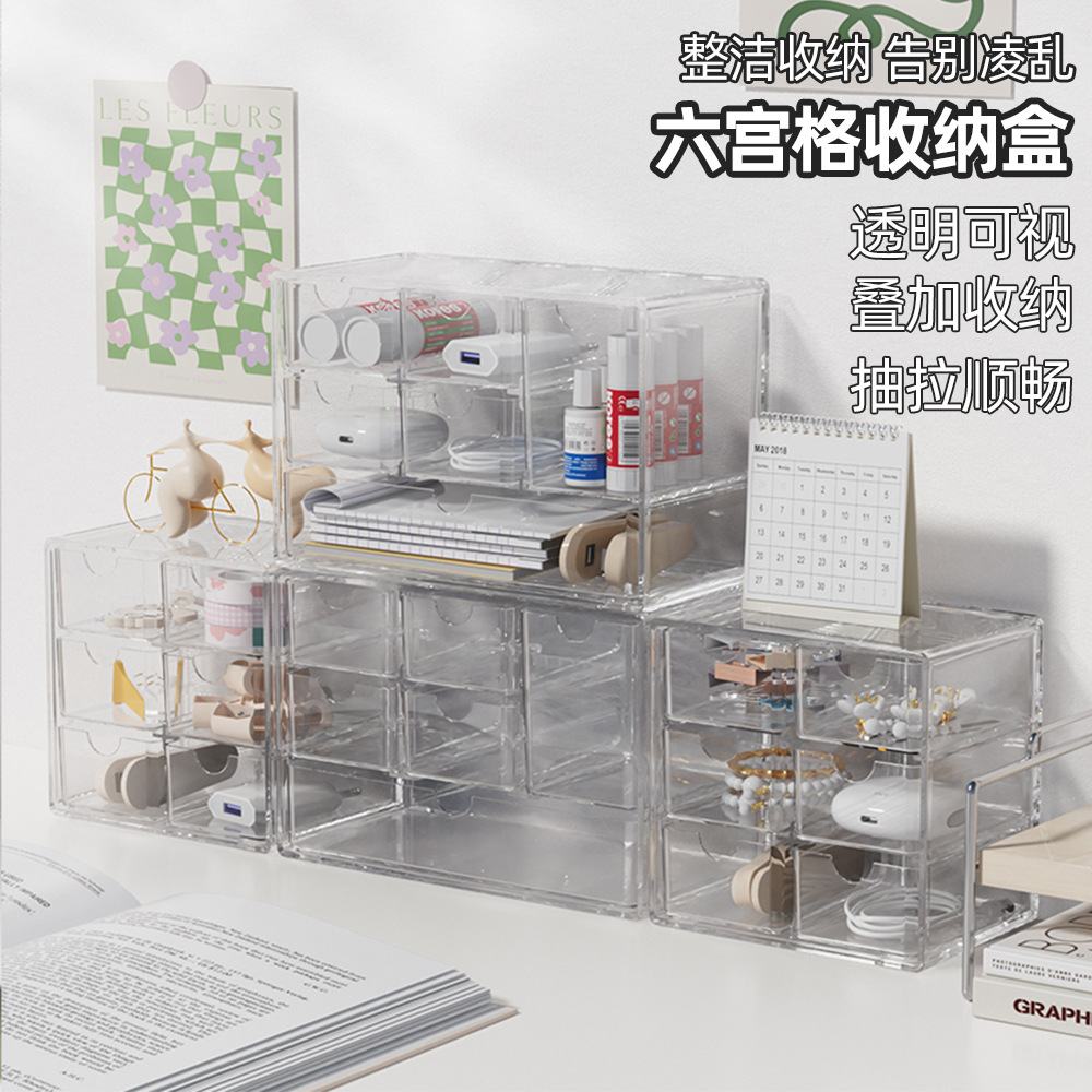 25年新款收纳盒家用透明可视六宫格可叠加桌面收纳置物架整理盒