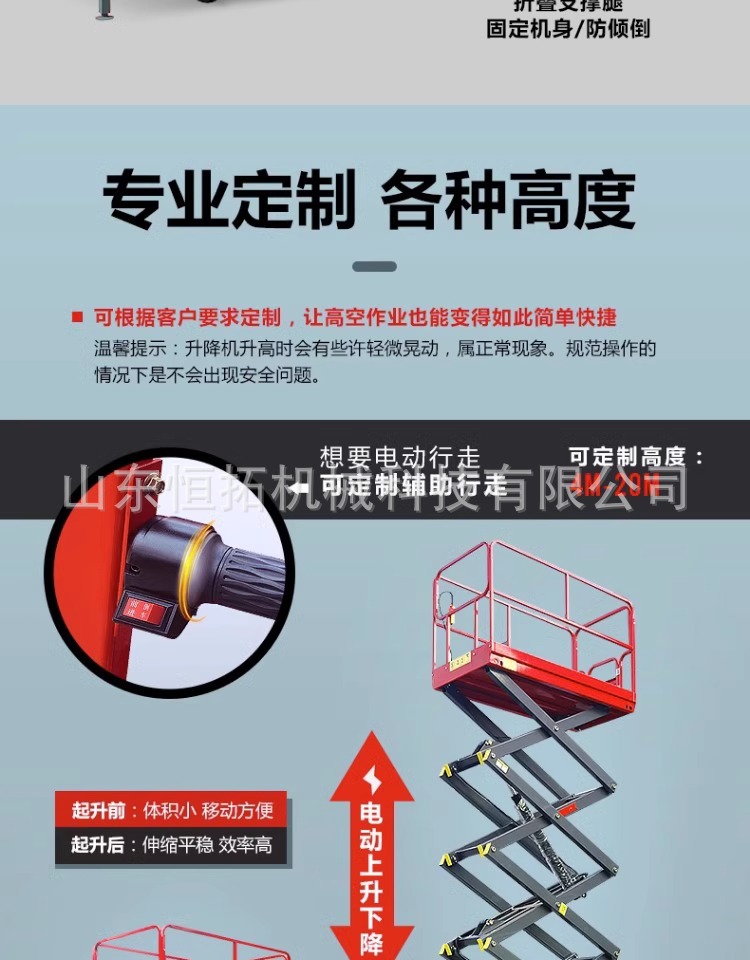 電動油圧昇降機フォーク式昇降プラットフォーム移動式高所作業車