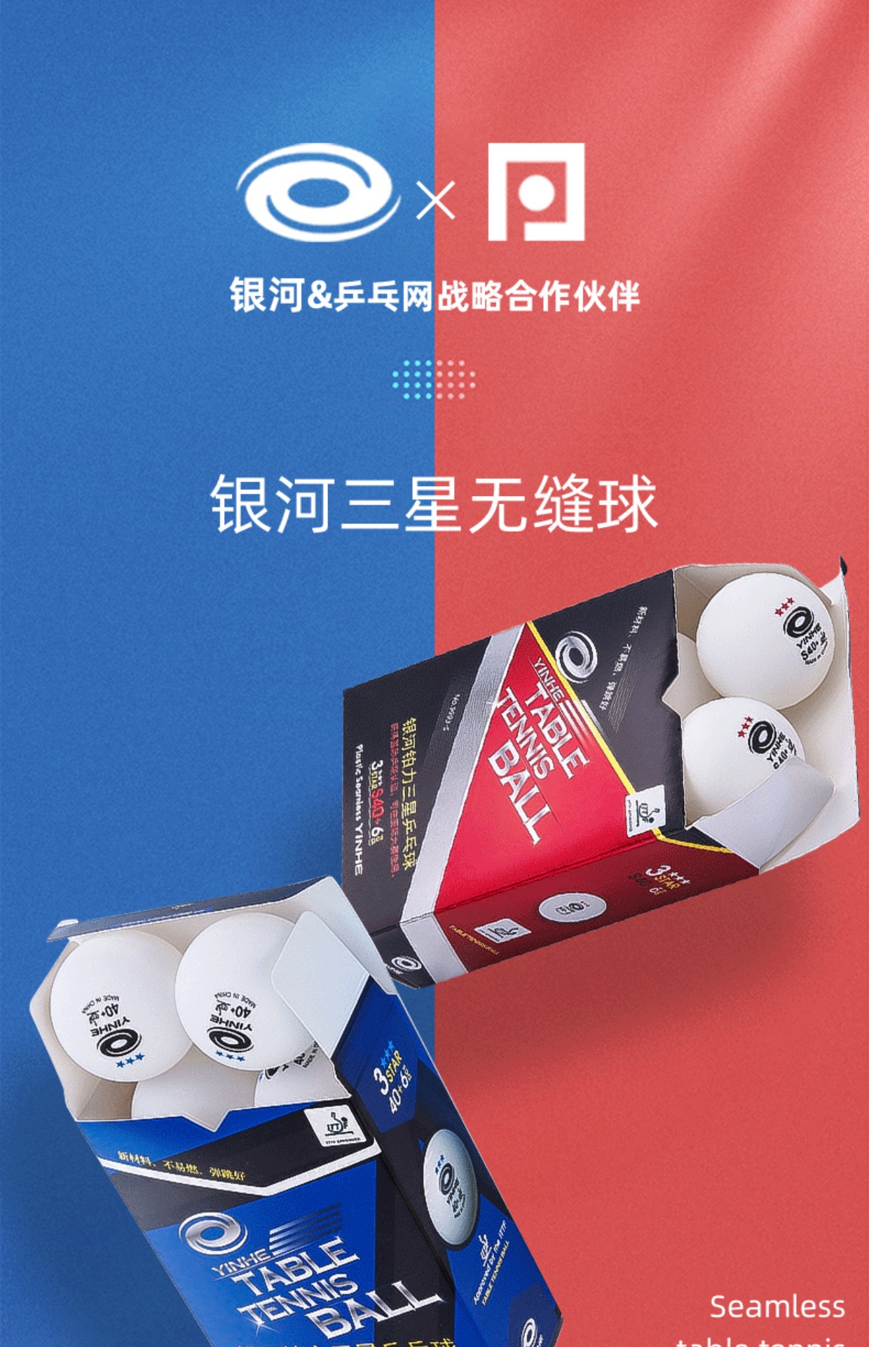 银河乒乓球铂力无缝三星级新材料钜力有缝球H40+专业训练比赛用球